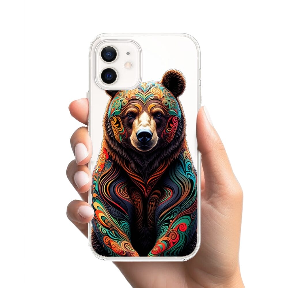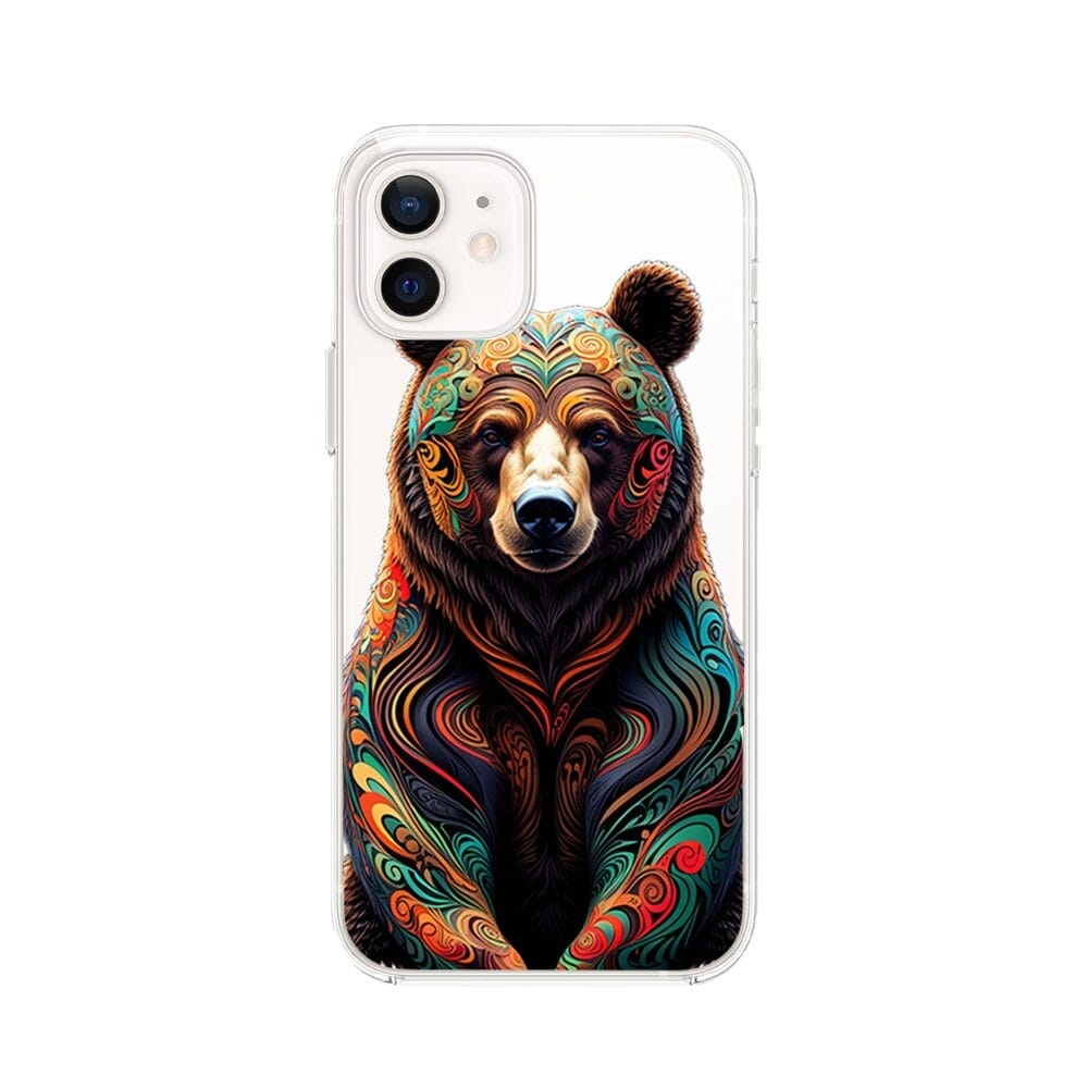 Etui do iPhone 12 przeźroczyste, silikonowe Flexi, Dzika Mandala, Niedźwiedź