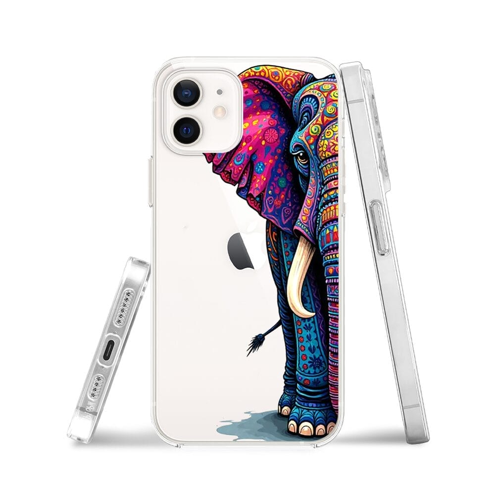 Etui do iPhone 12 przeźroczyste, silikonowe Flexi, Dzika Mandala, Słoń