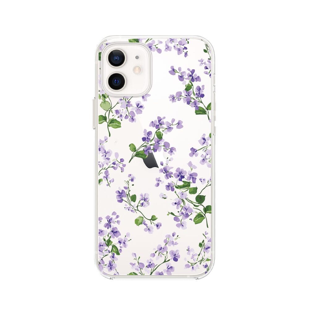 Etui do iPhone 12 przeźroczyste, silikonowe Flexi, Fioletowe Bratki