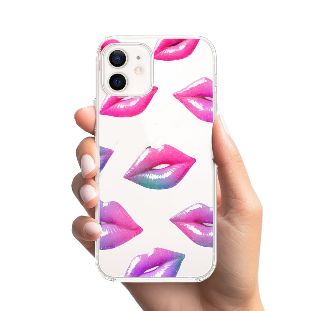 Etui do iPhone 12 przeźroczyste, silikonowe Flexi, hologramowe usta