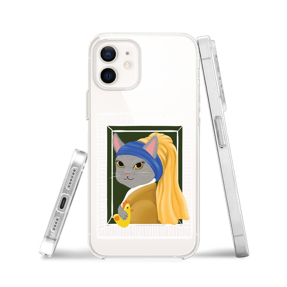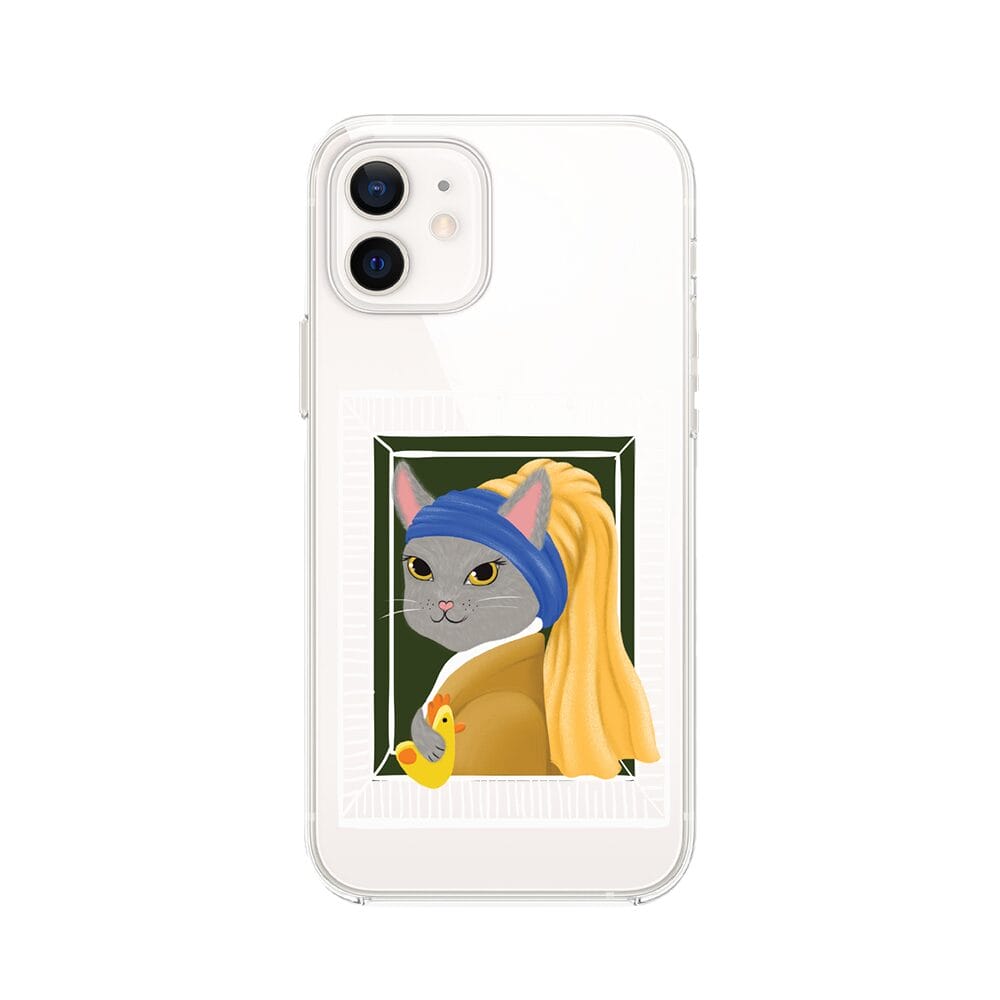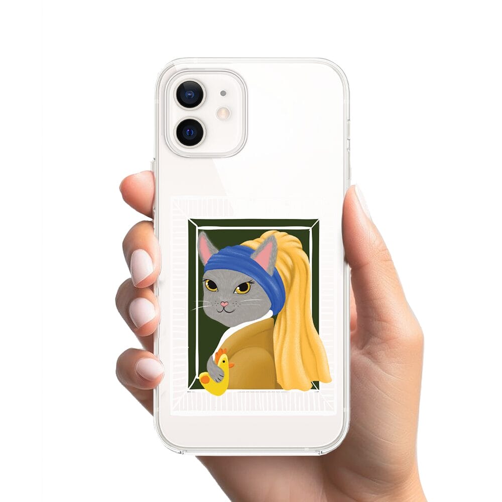 Etui do iPhone 12 przeźroczyste, silikonowe Flexi, kotek z kurczakiem