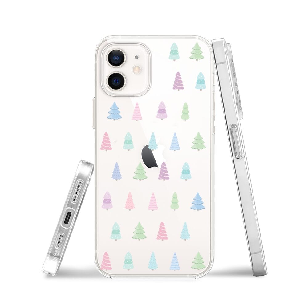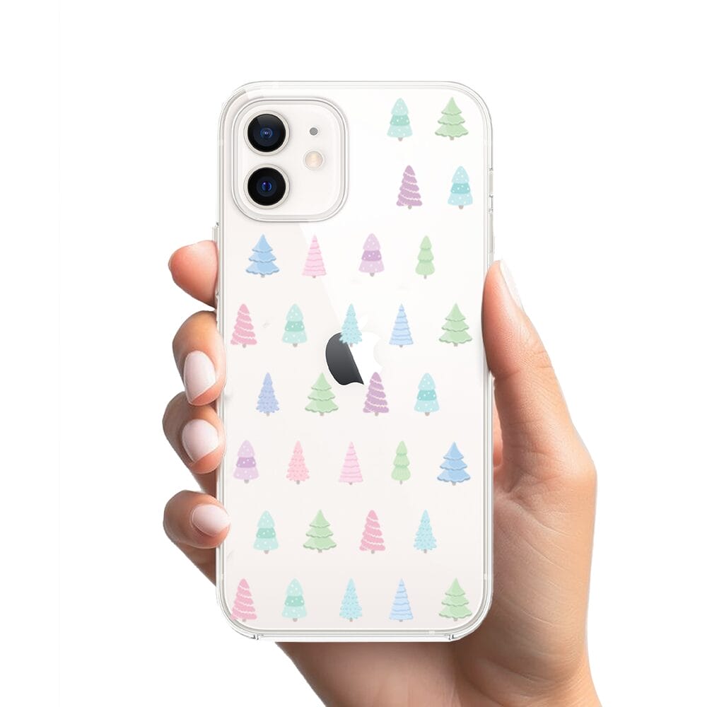 Etui do iPhone 12 przeźroczyste, silikonowe Flexi, Pastelowe choinki