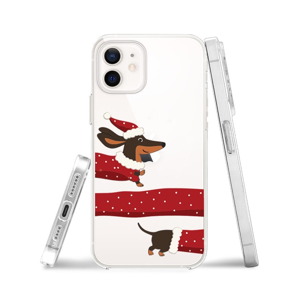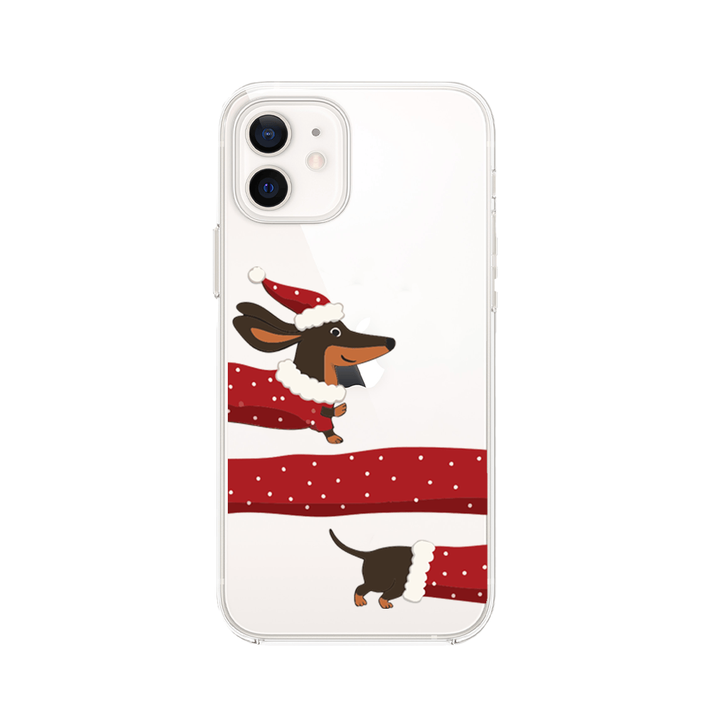 Etui do iPhone 12 przeźroczyste, silikonowe Flexi, Przytulne święta, świąteczny jamnik