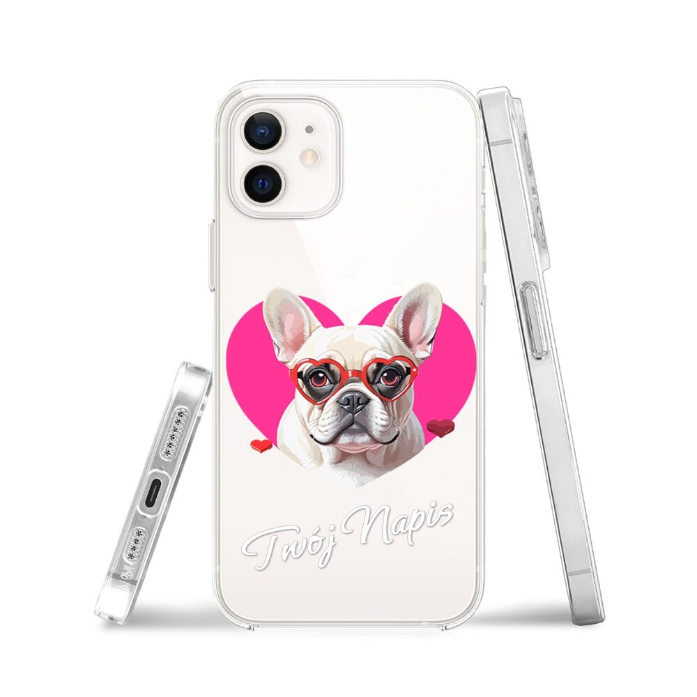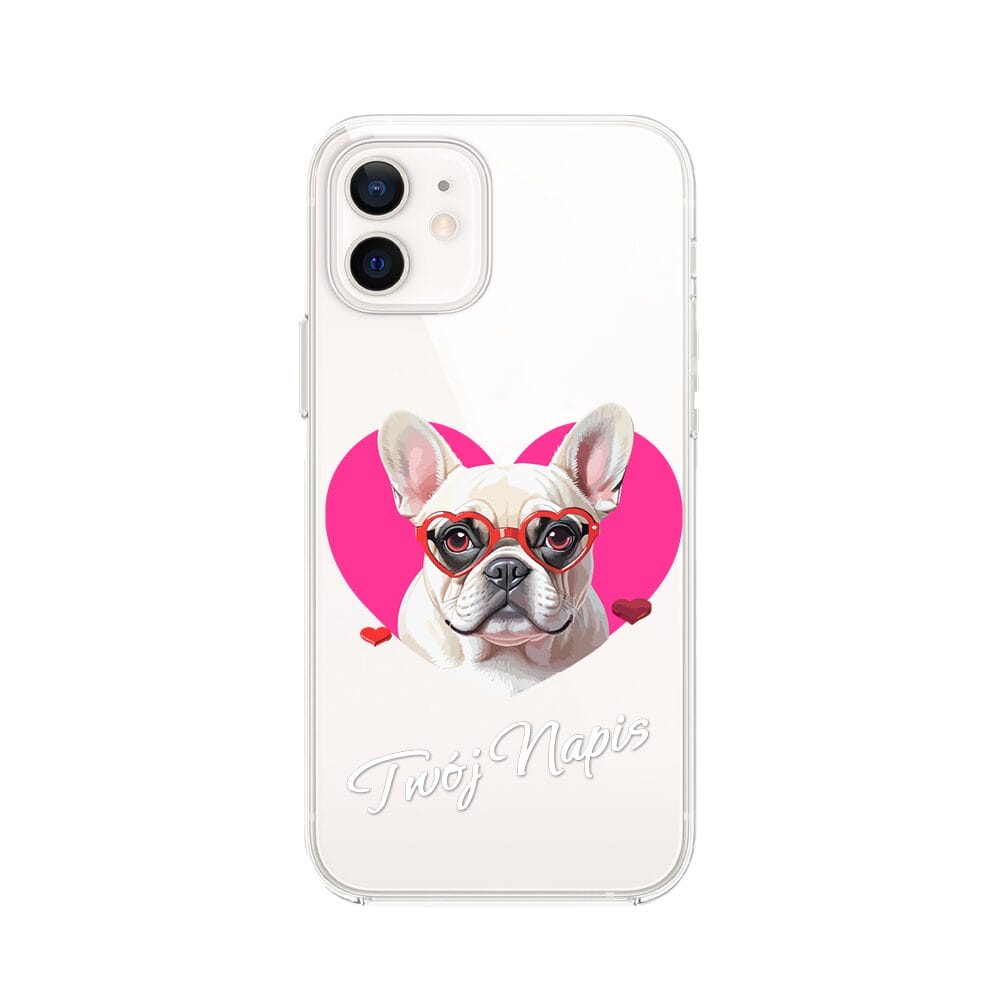 Etui do iPhone 12 przeźroczyste, silikonowe Flexi, Puppy Love, pies rasy Buldog Francuski