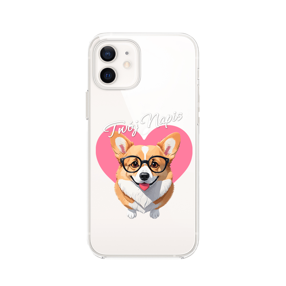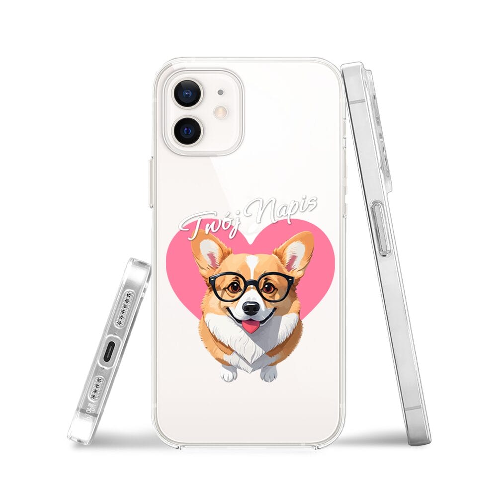 Etui do iPhone 12 przeźroczyste, silikonowe Flexi, Puppy Love, pies rasy Corgi