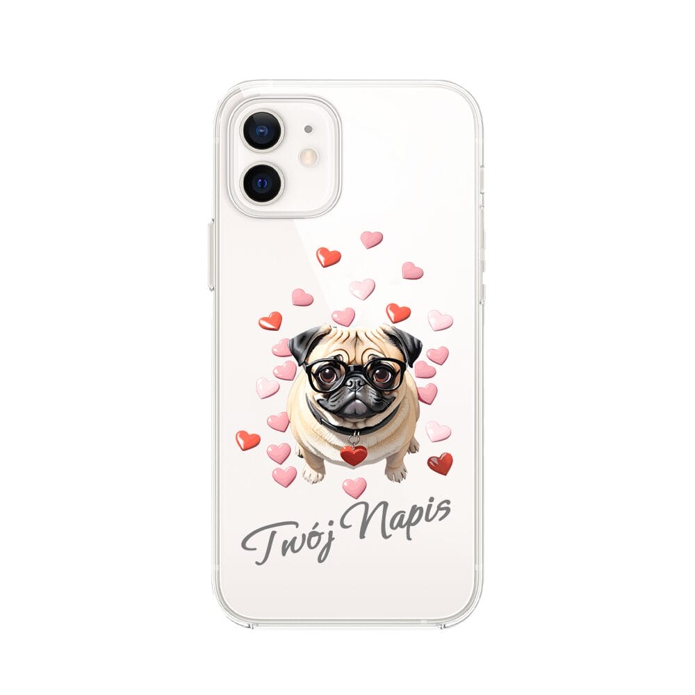 Etui do iPhone 12 przeźroczyste, silikonowe Flexi, Puppy Love, pies rasy Mops