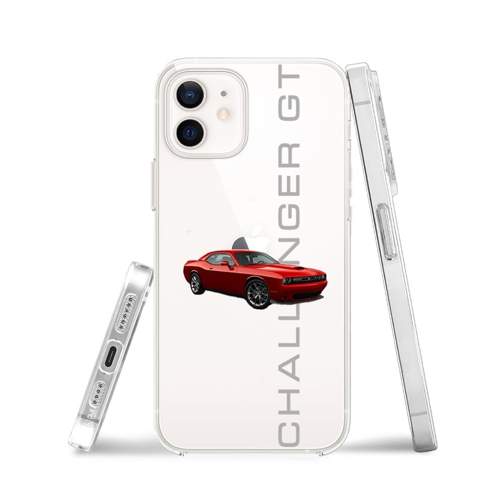 Etui do iPhone 12 przeźroczyste, silikonowe Flexi, Szybkie Auta, czerwony Challenger GT