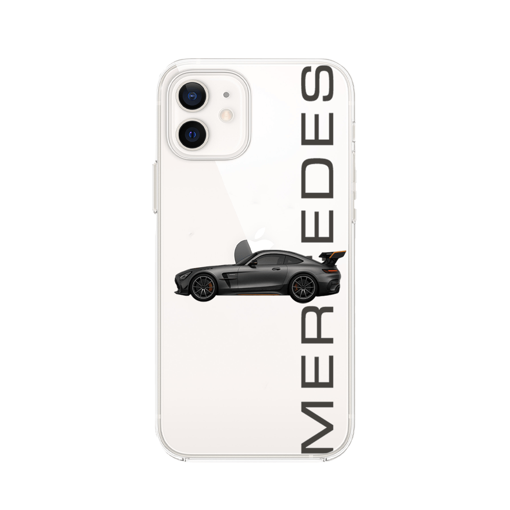 Etui do iPhone 12 przeźroczyste, silikonowe Flexi, Szybkie Auta, Stalowe AMG-GT