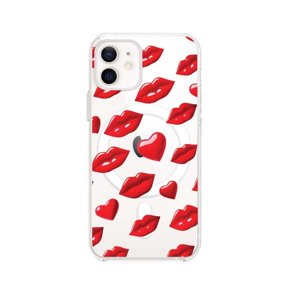 Etui do iPhone 12 z MagSafe przeźroczyste, silikonowe Flexi, czerwone usta