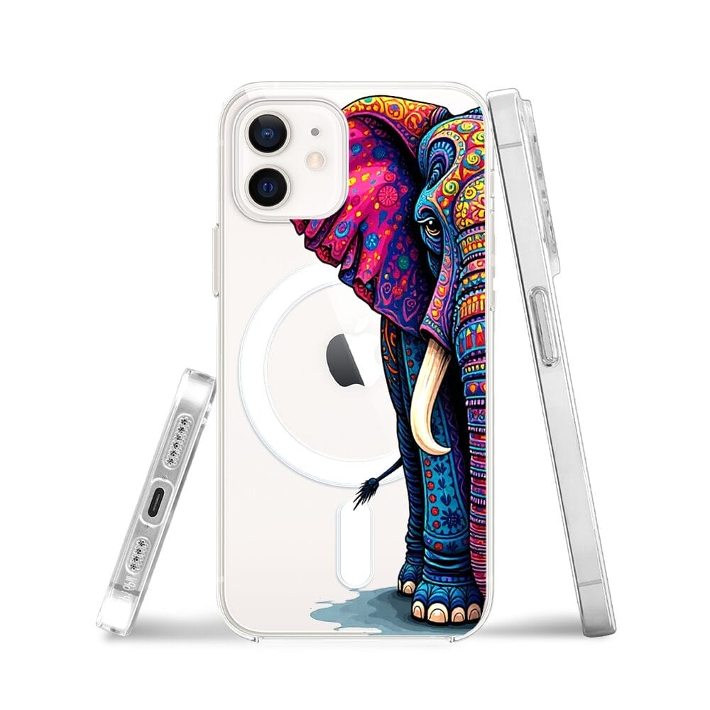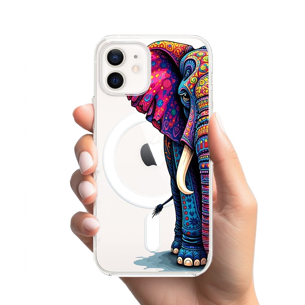 Etui do iPhone 12 z MagSafe przeźroczyste, silikonowe Flexi, Dzika Mandala, Słoń