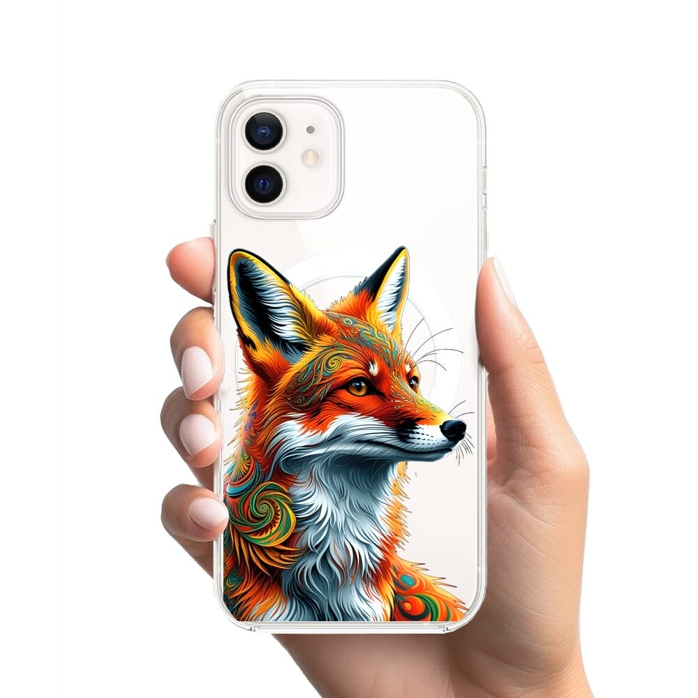 Etui do iPhone 12 z MagSafe przeźroczyste, silikonowe Flexi, Dzika Mandala, Twarz lisa