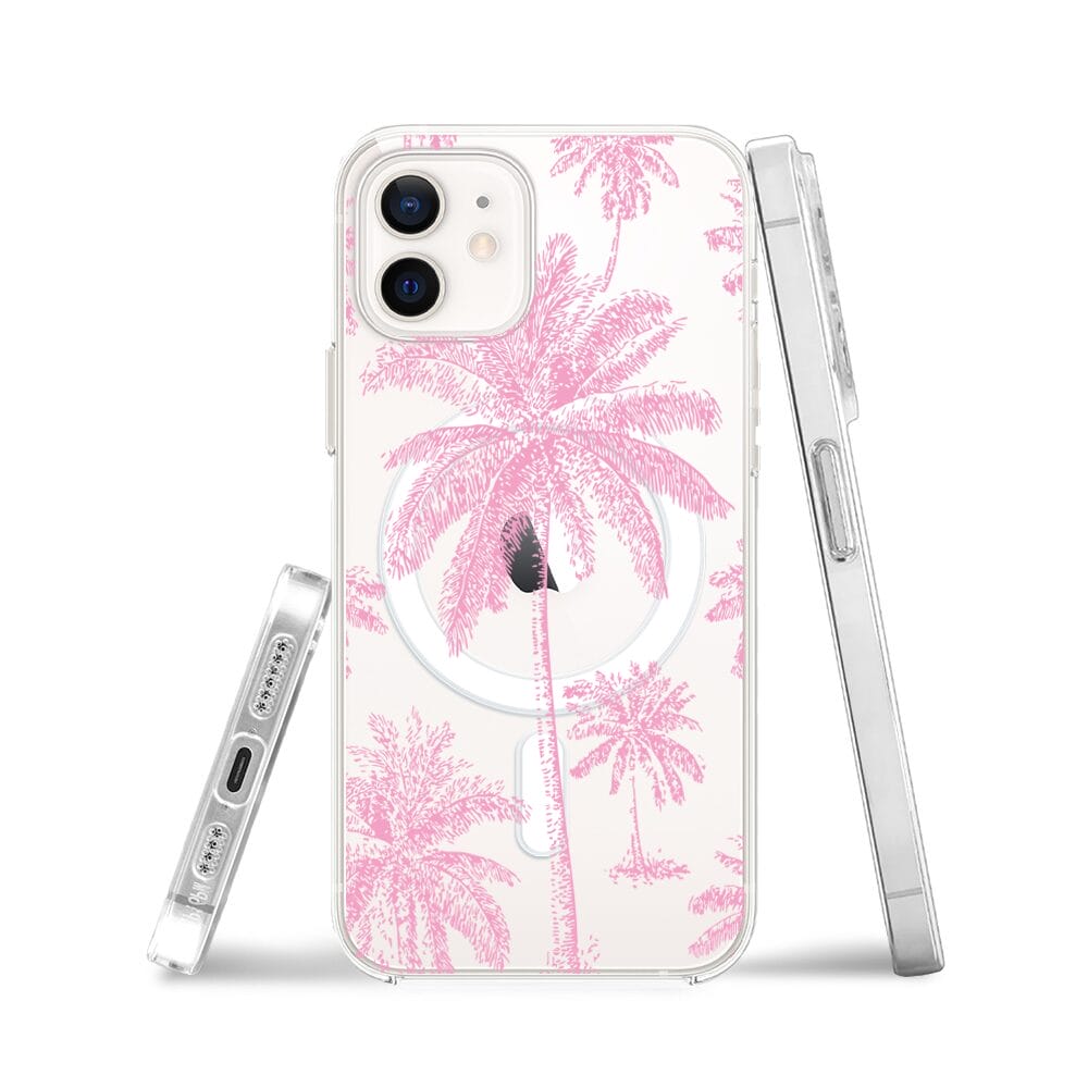 Etui do iPhone 12 z MagSafe przeźroczyste, silikonowe Flexi, Mystic, Różowe palmy