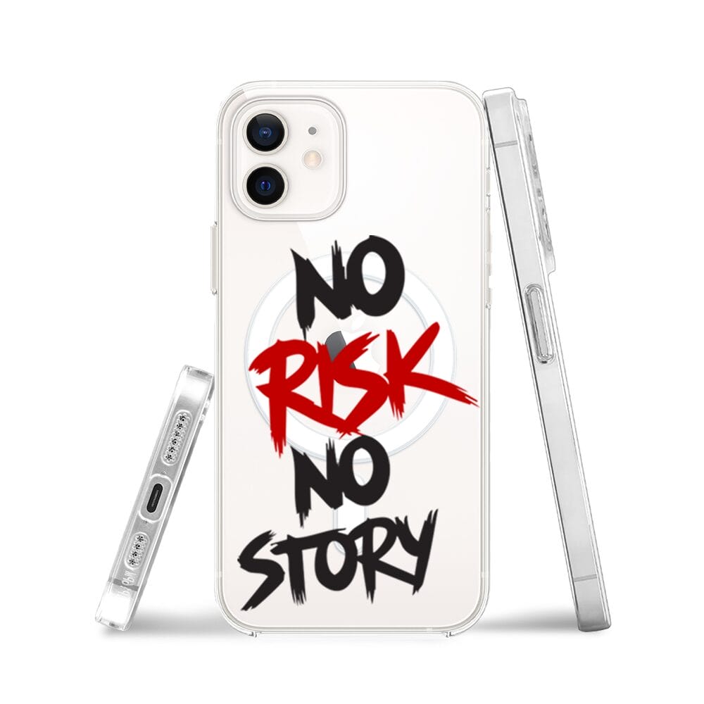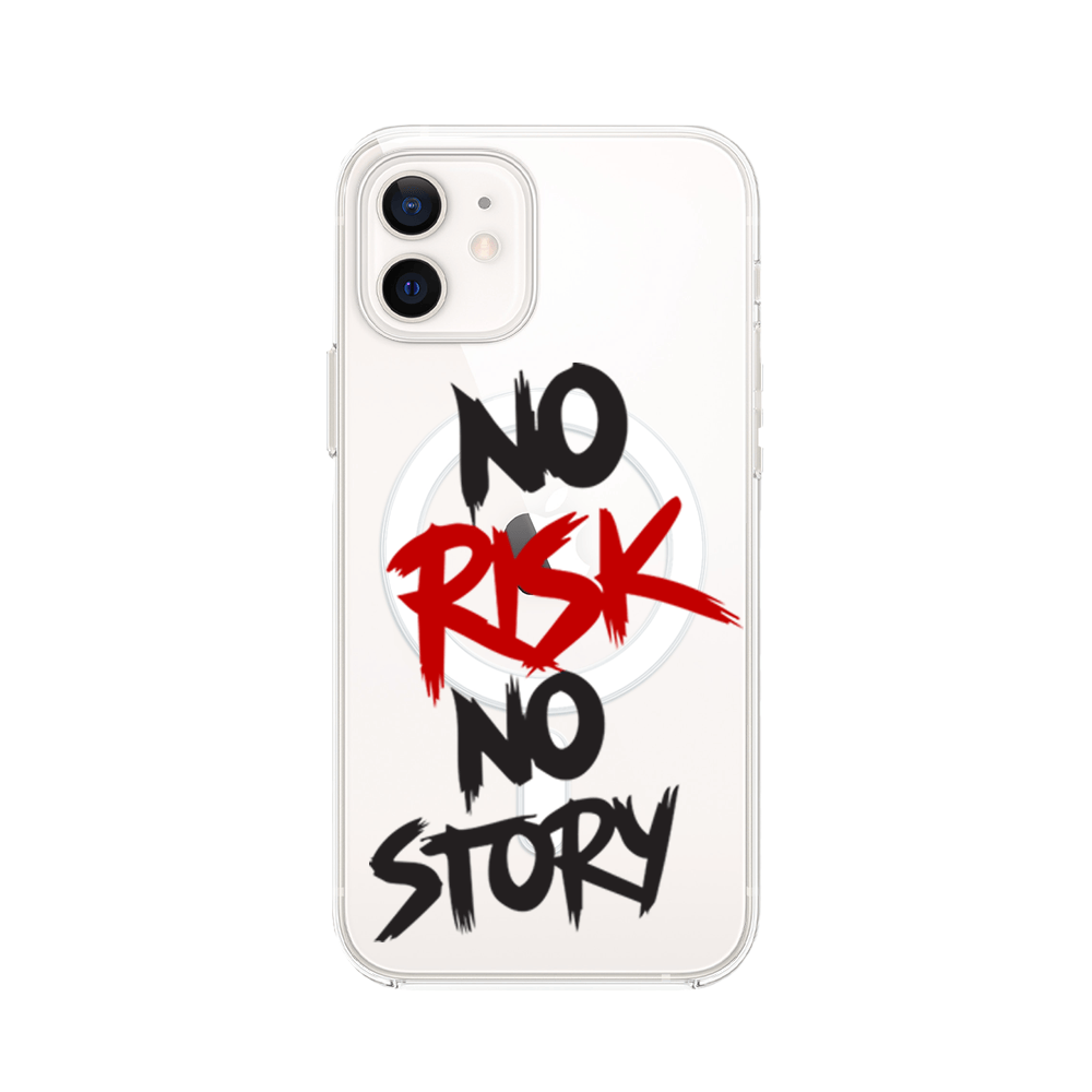 Etui do iPhone 12 z MagSafe przeźroczyste, silikonowe Flexi, Positive Vibes, No Risk No Story
