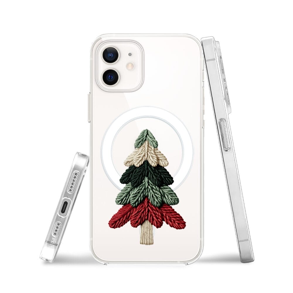Etui do iPhone 12 z MagSafe przeźroczyste, silikonowe Flexi, Przytulne święta, Dziana choinka
