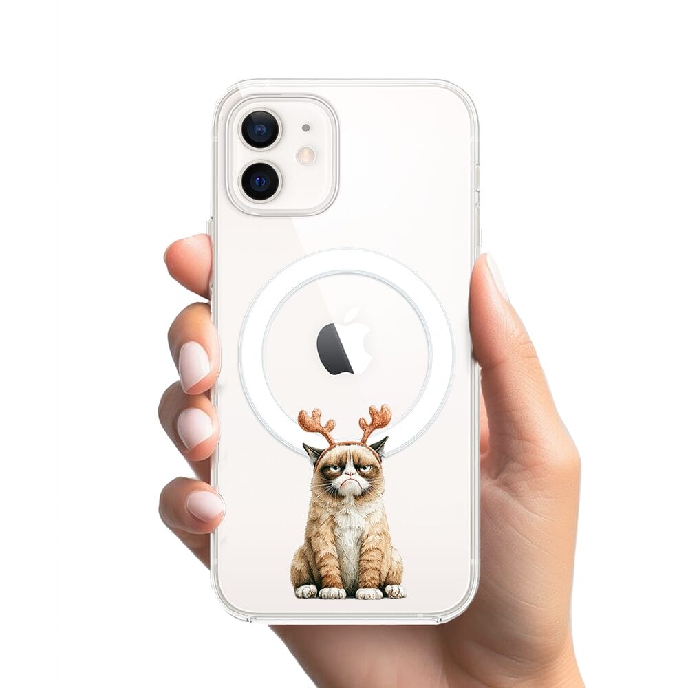 Etui do iPhone 12 z MagSafe przeźroczyste, silikonowe Flexi, Przytulne święta, Kot który nie chciał być reniferem