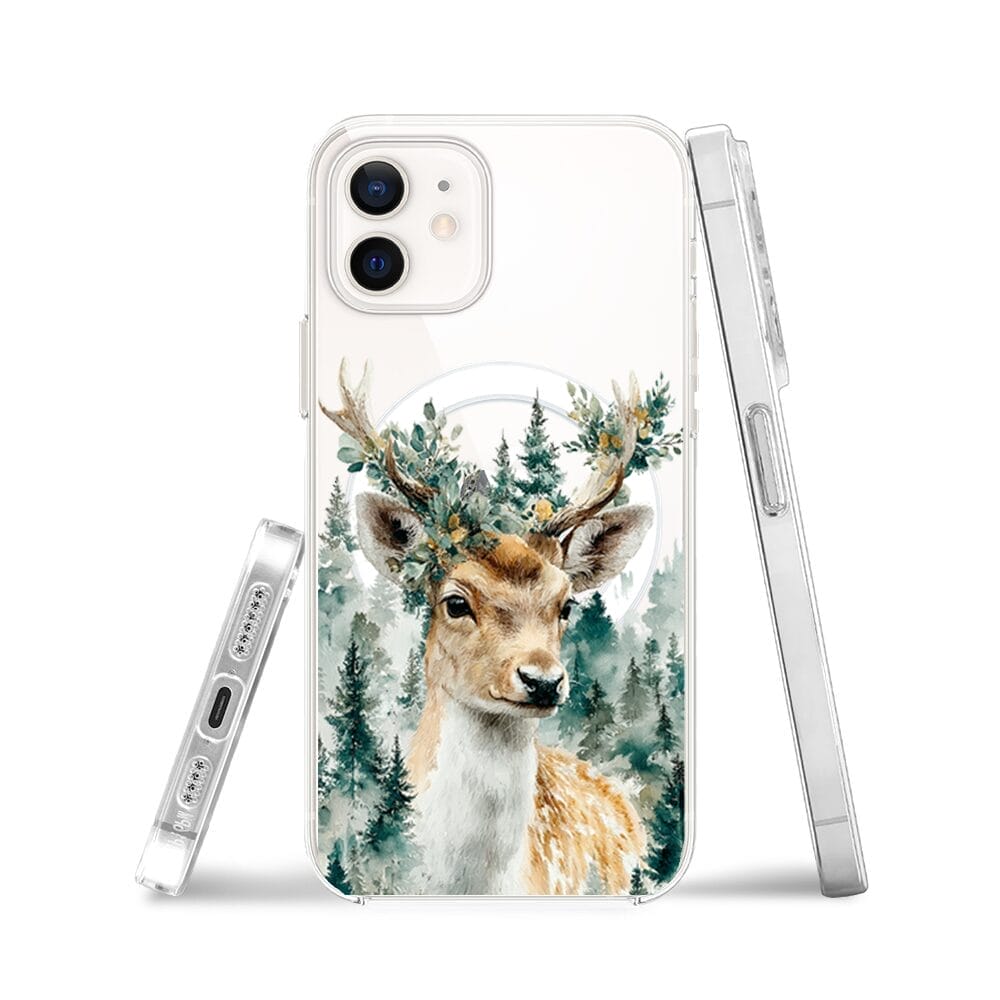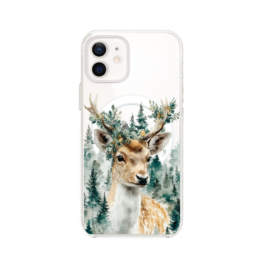 Etui do iPhone 12 z MagSafe przeźroczyste, silikonowe Flexi, Przytulne święta, Leśny jelonek