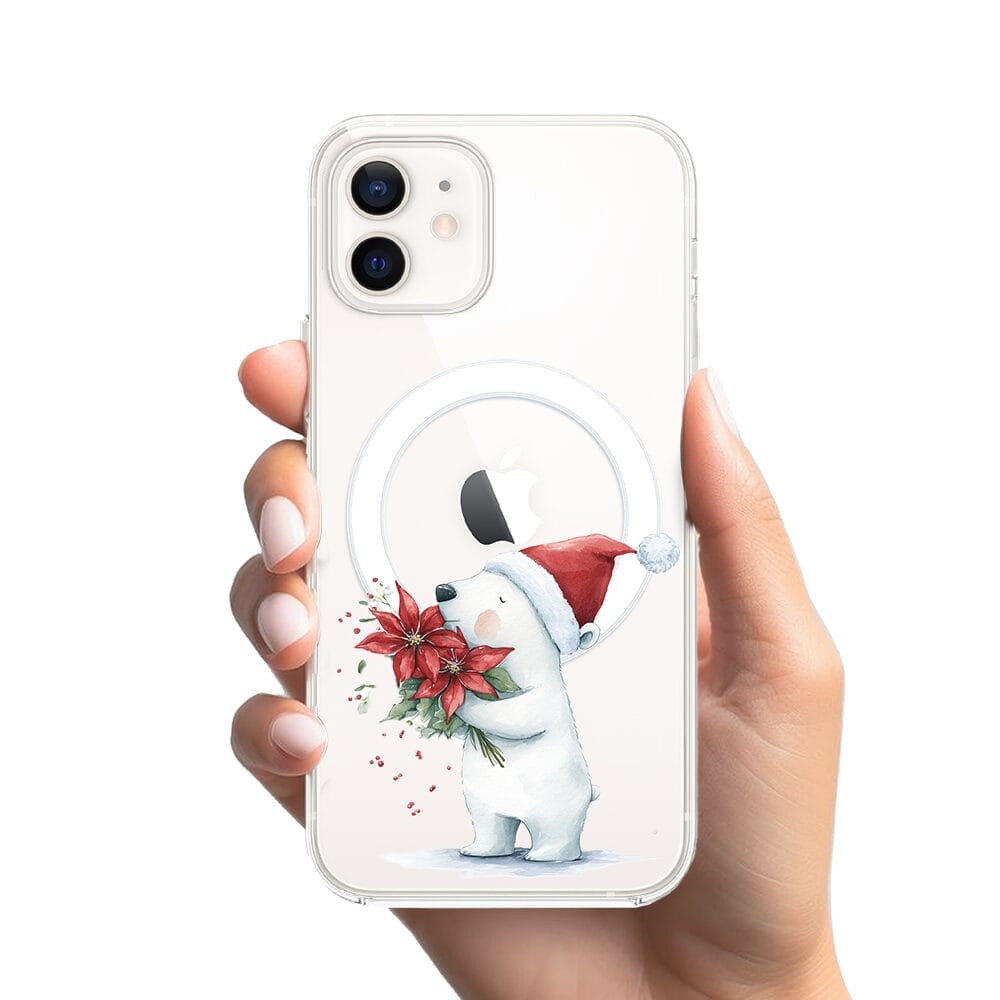 Etui do iPhone 12 z MagSafe przeźroczyste, silikonowe Flexi, Przytulne święta, Miś świąteczny