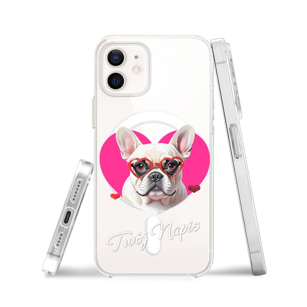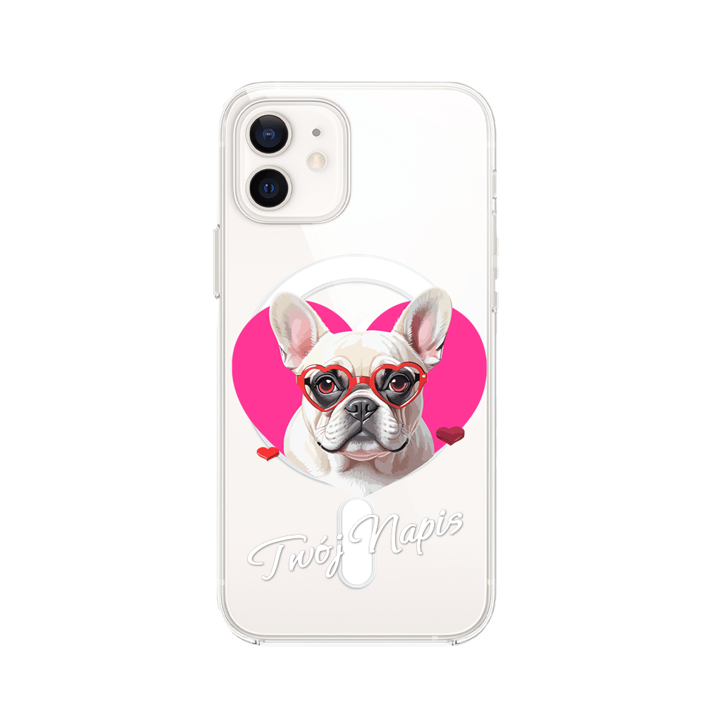 Etui do iPhone 12 z MagSafe przeźroczyste, silikonowe Flexi, Puppy Love, pies rasy Buldog Francuski