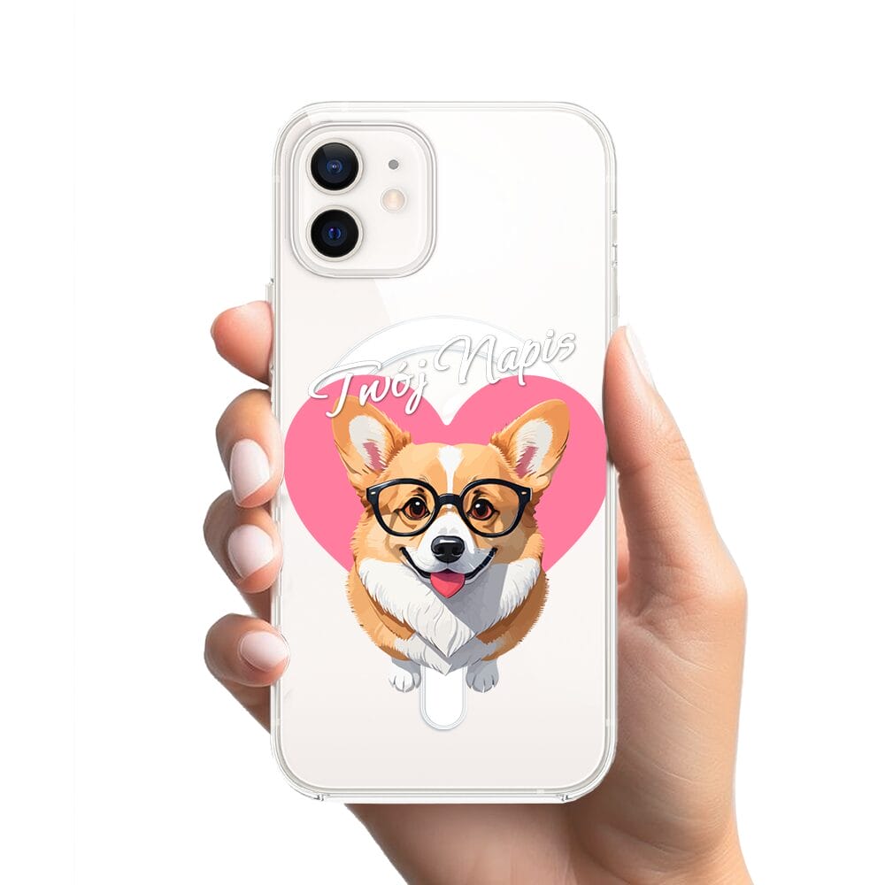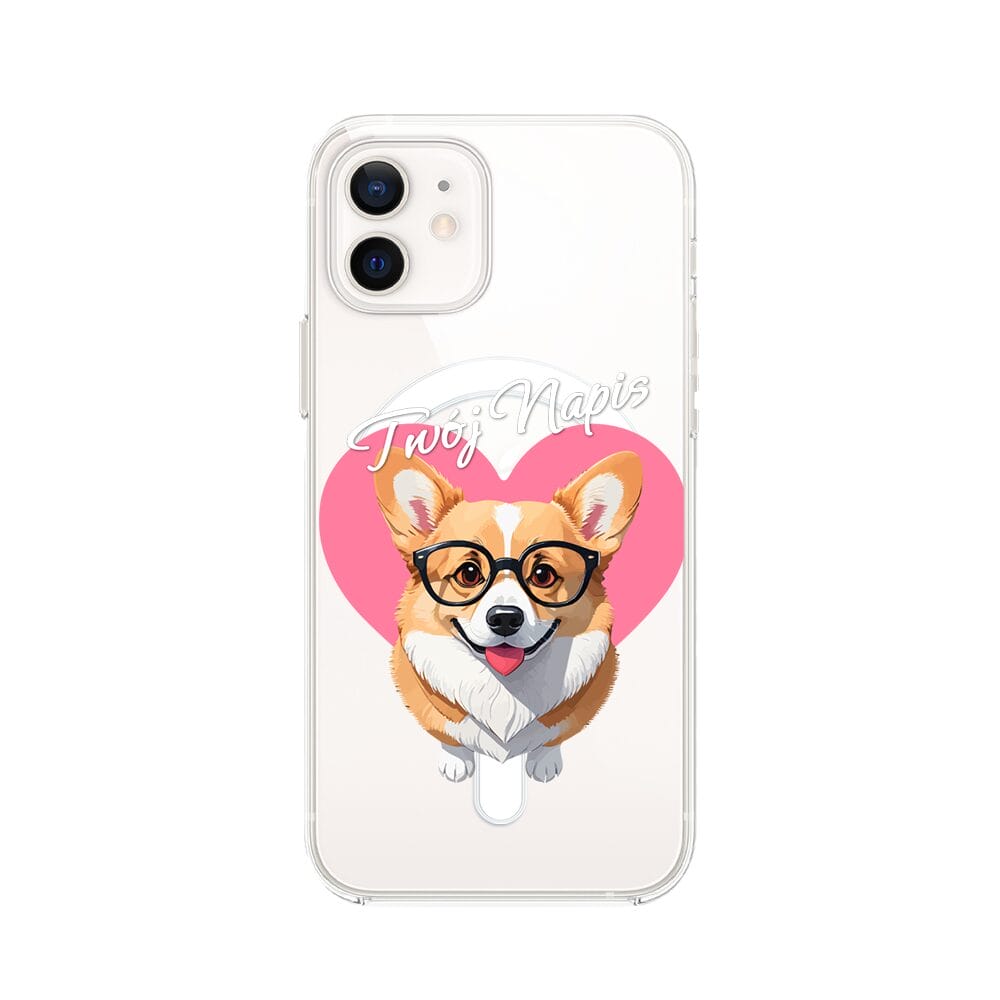 Etui do iPhone 12 z MagSafe przeźroczyste, silikonowe Flexi, Puppy Love, pies rasy Corgi