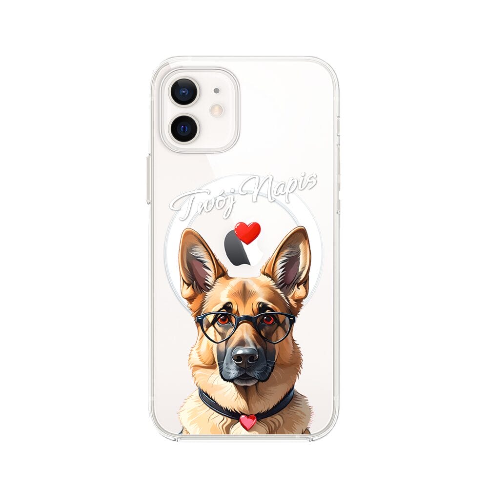 Etui do iPhone 12 z MagSafe przeźroczyste, silikonowe Flexi, Puppy Love, pies rasy Owczarek Niemiecki
