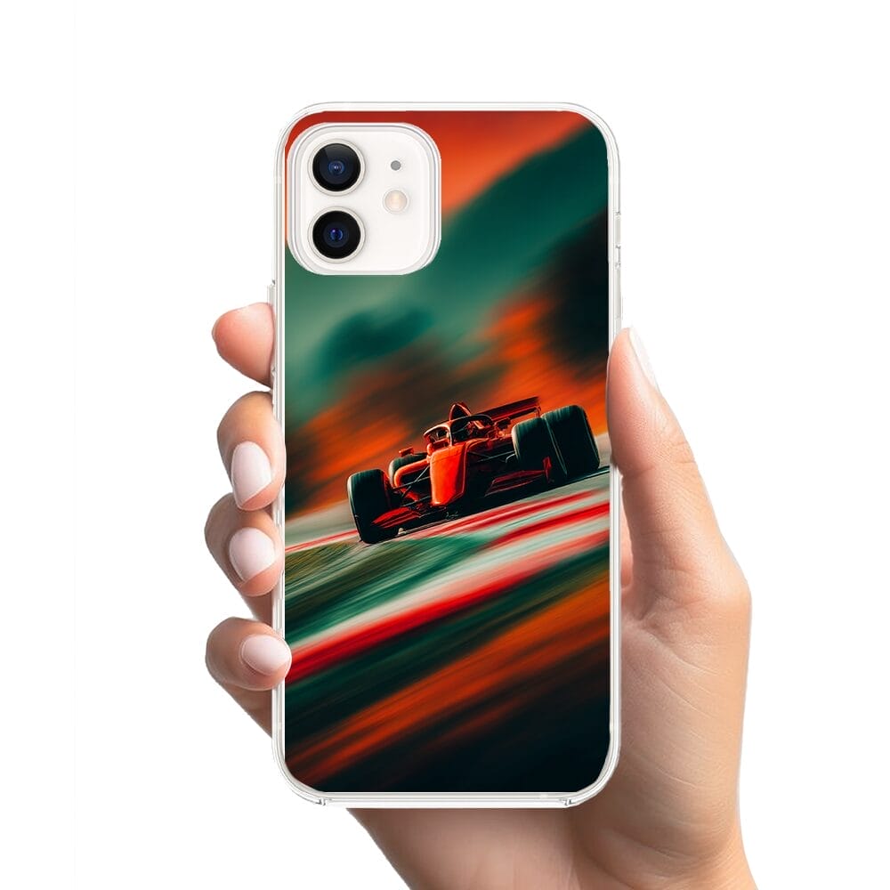 Etui do iPhone 12 z MagSafe przeźroczyste, silikonowe Flexi, Szybkie Auta, Wyścig F1