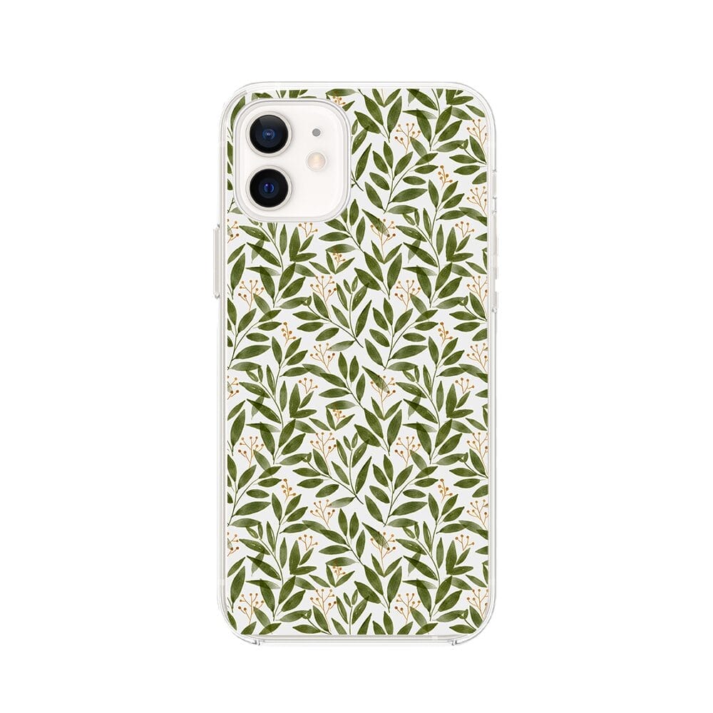 Etui do iPhone 12 z MagSafe przeźroczyste, silikonowe Flexi, zielone gałązki