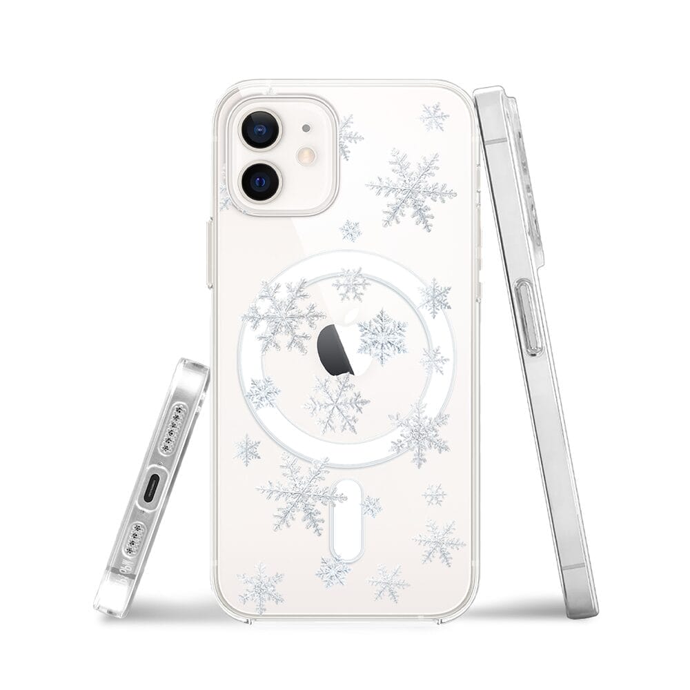 Etui do iPhone 12 z MagSafe przeźroczyste, silikonowe Flexi, Zimowa magia, Delikatne płatki śniegu