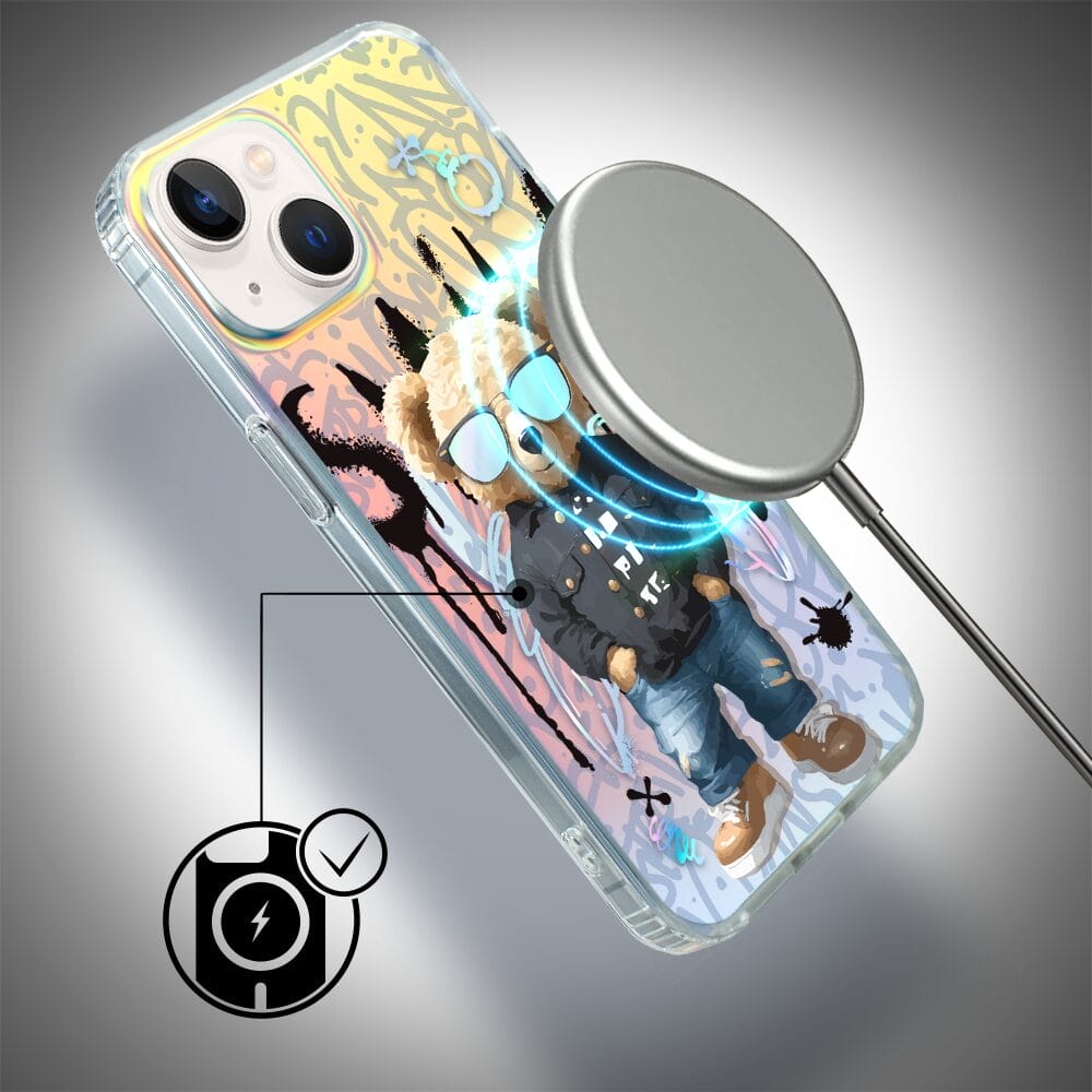 Etui do iPhone 13 IBIZU California Sunset z MagSafe, zmieniające kolor, Graffiti Boy, artystyczny miś