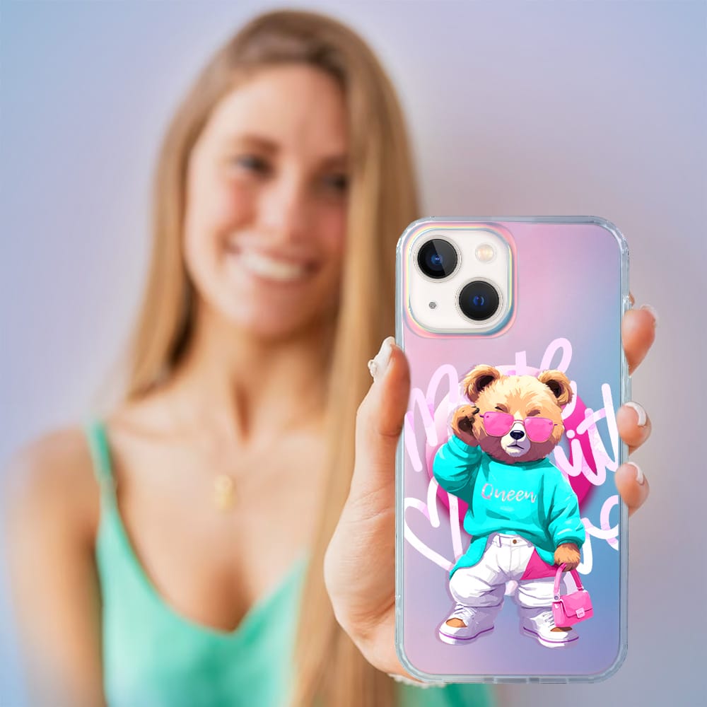 Etui do iPhone 13 IBIZU California Sunset z MagSafe, zmieniające kolor, Pink Queen, stylowy miś