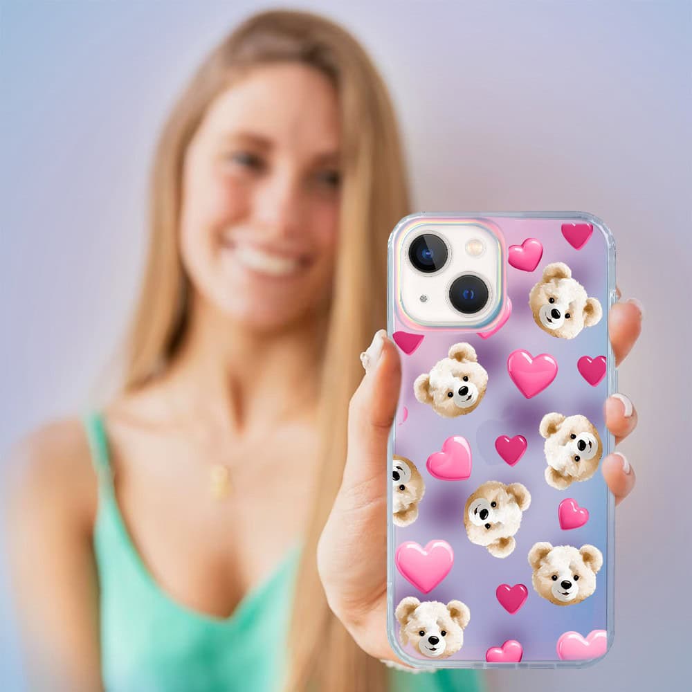 Etui do iPhone 13 IBIZU California Sunset zmieniające kolor, Love Mood, miś i serduszka
