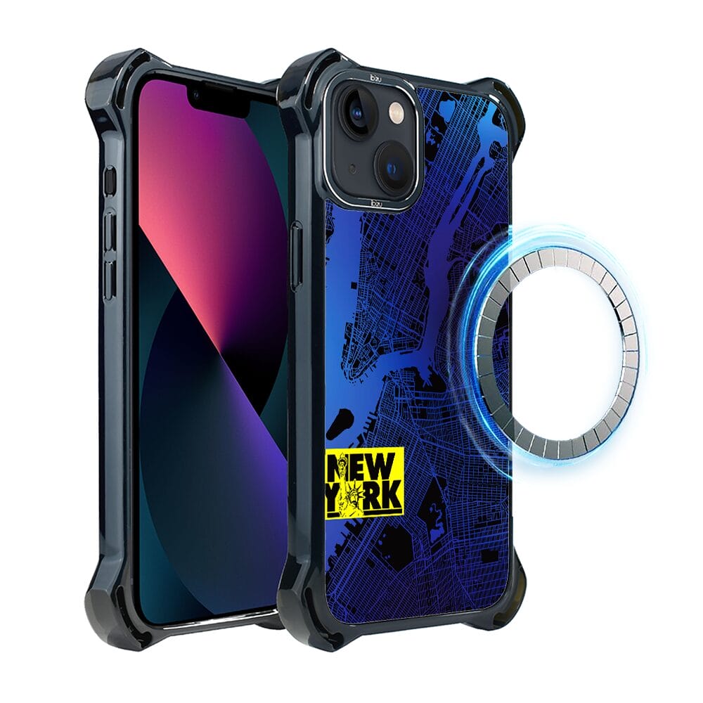 Etui do iPhone 13 IBIZU DropGuard Ultra z MagSafe, mapy świata, New York