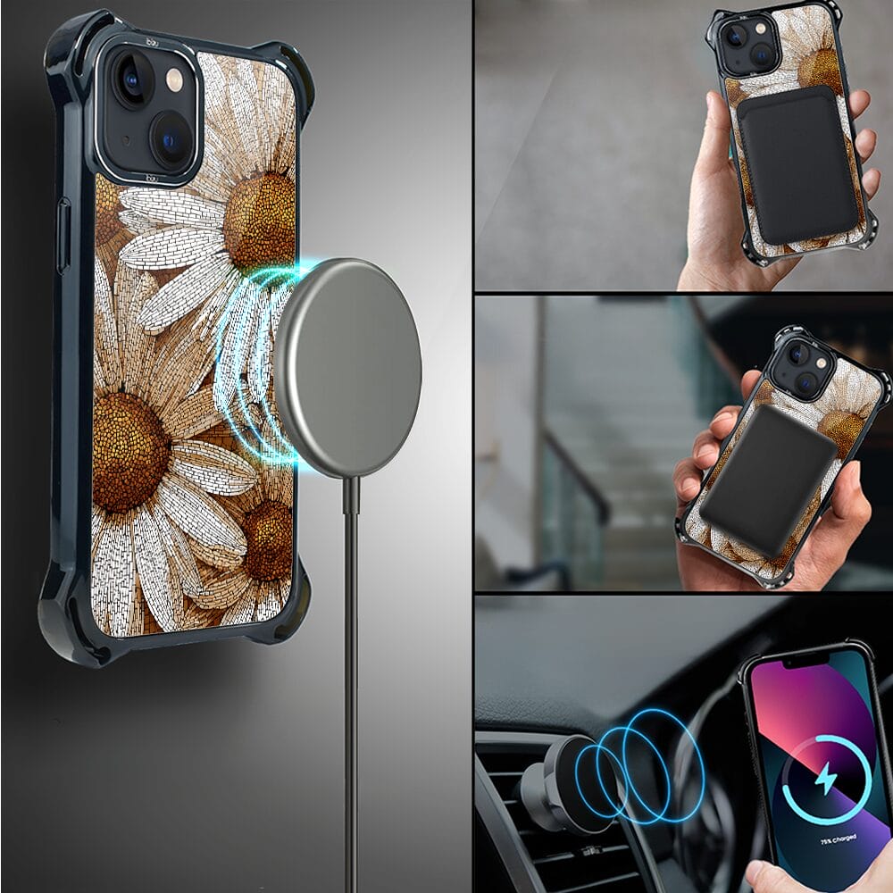 Etui do iPhone 13 IBIZU DropGuard Ultra z MagSafe, Modern Classics, Mozaika rumianków