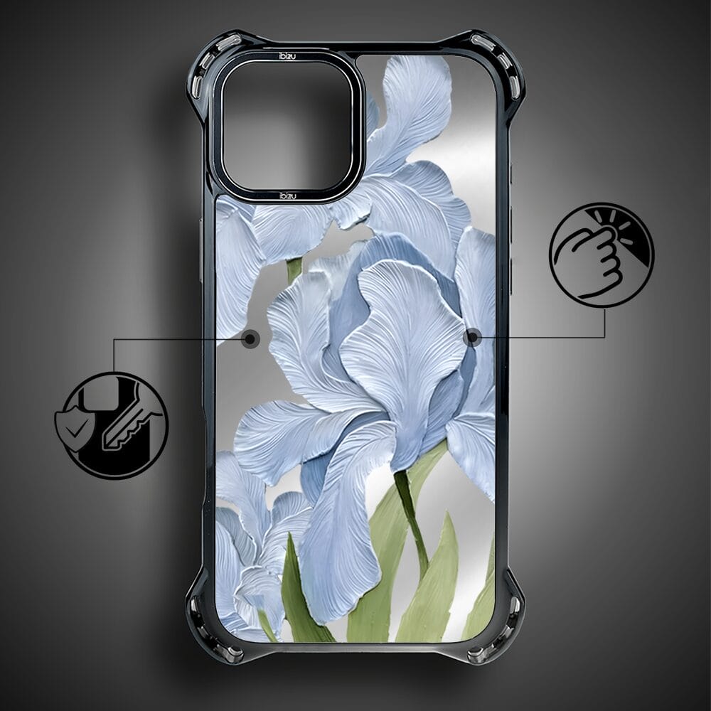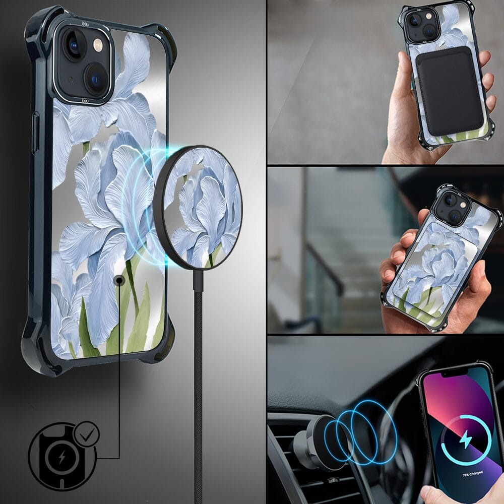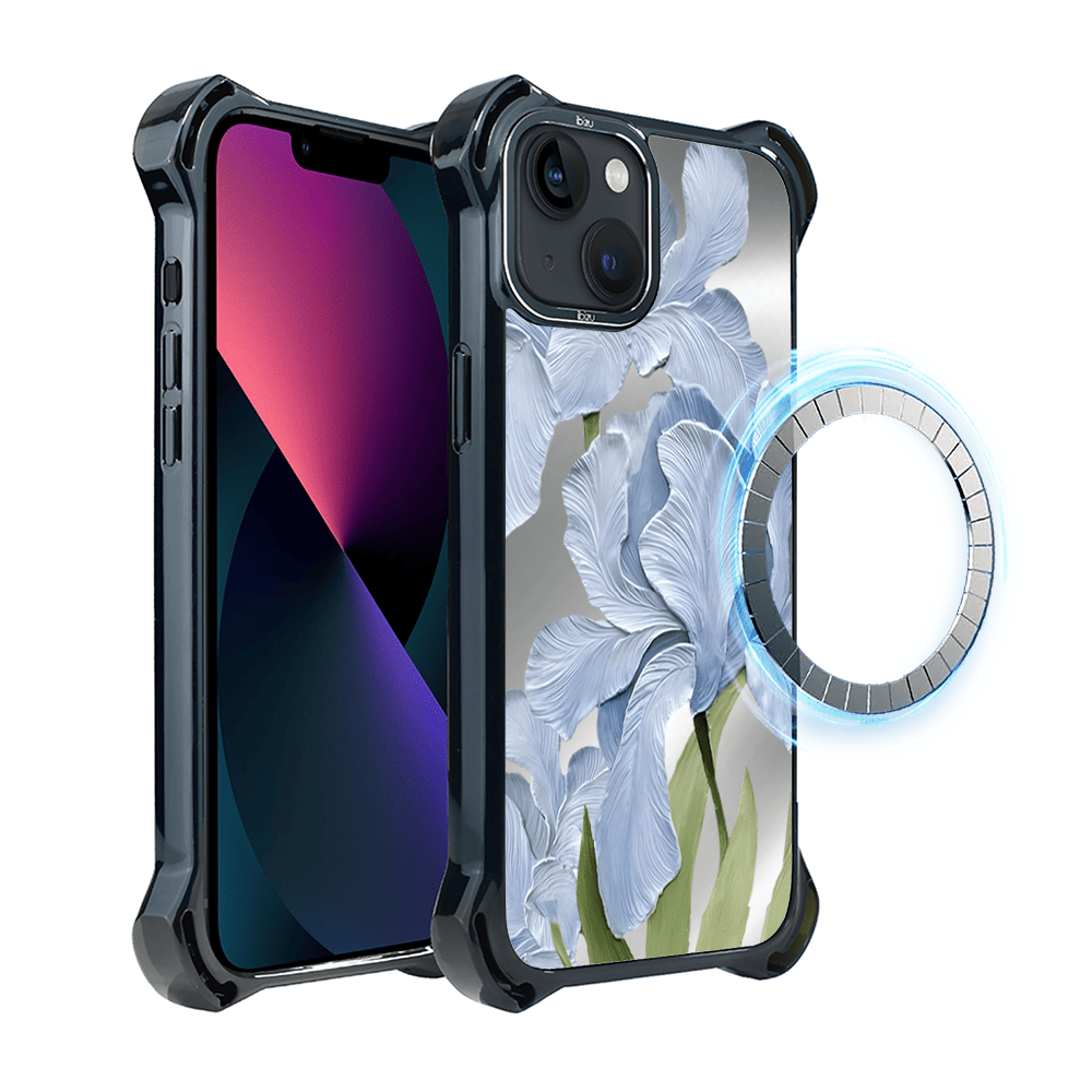 Etui do iPhone 13 IBIZU DropGuard Ultra z MagSafe, Relief Garden, Błękitny irys