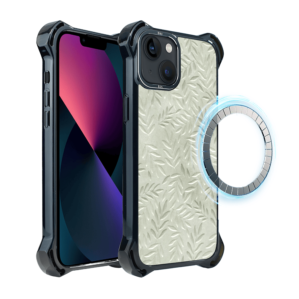 Etui do iPhone 13 IBIZU DropGuard Ultra z MagSafe, Relief Garden, Ślad oliwki