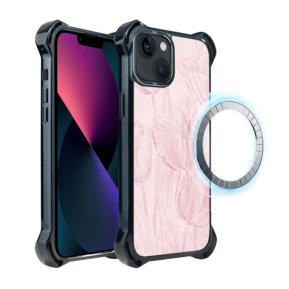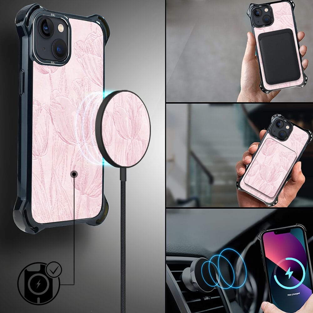Etui do iPhone 13 IBIZU DropGuard Ultra z MagSafe, Relief Garden, Tulipanowy fresk