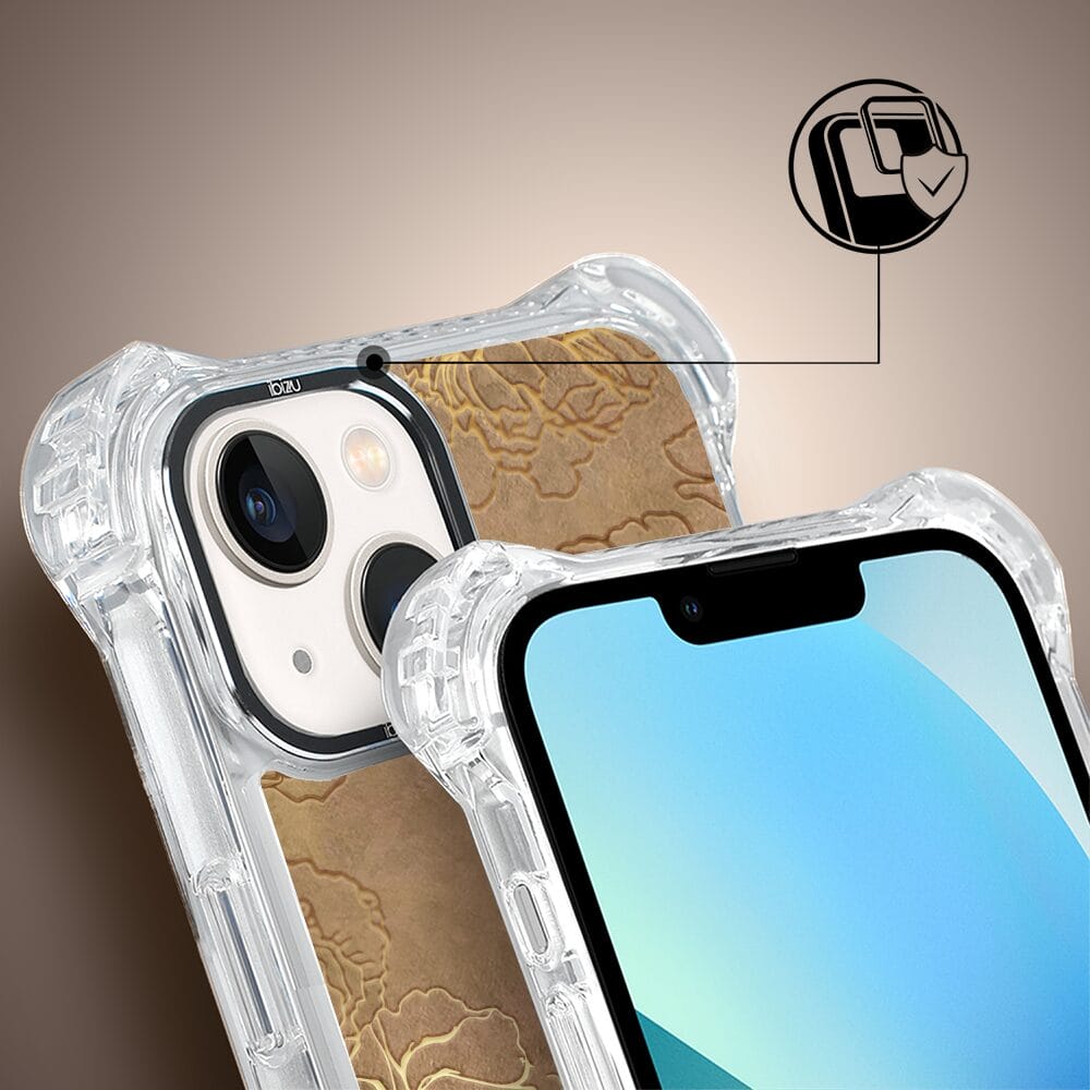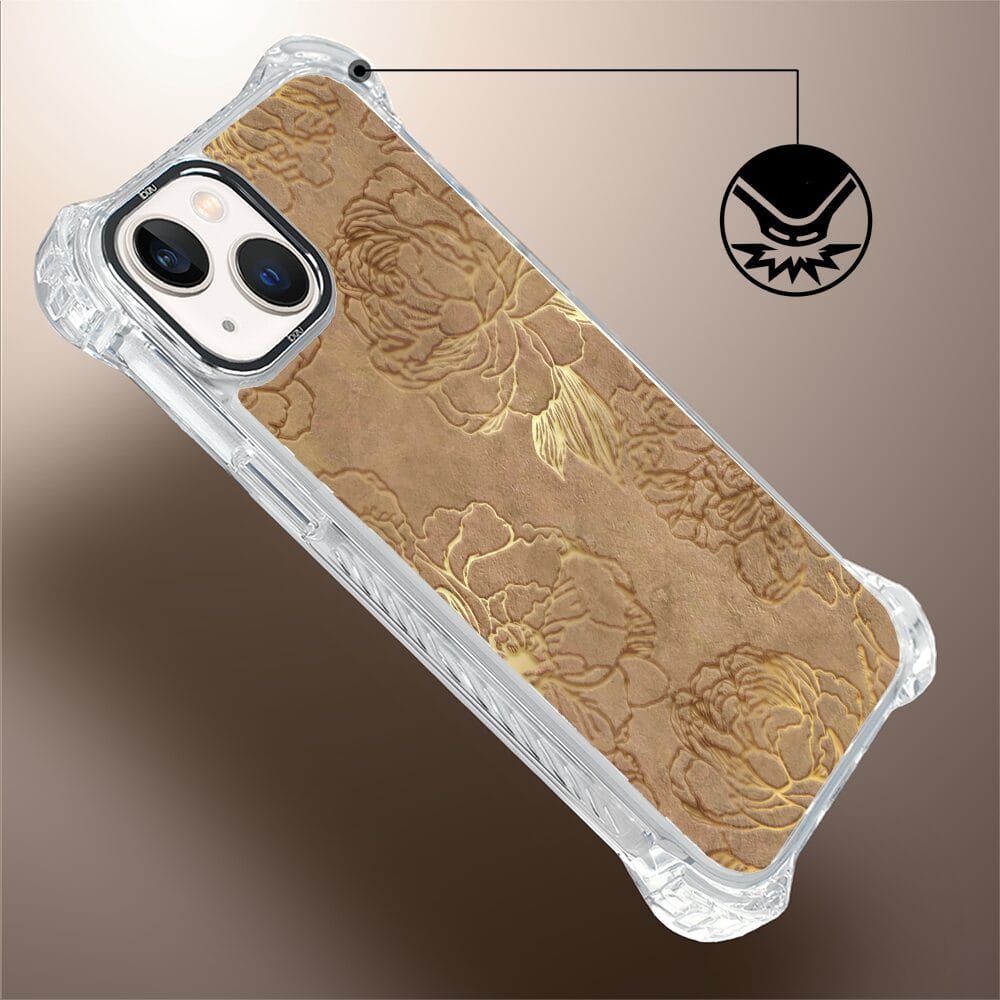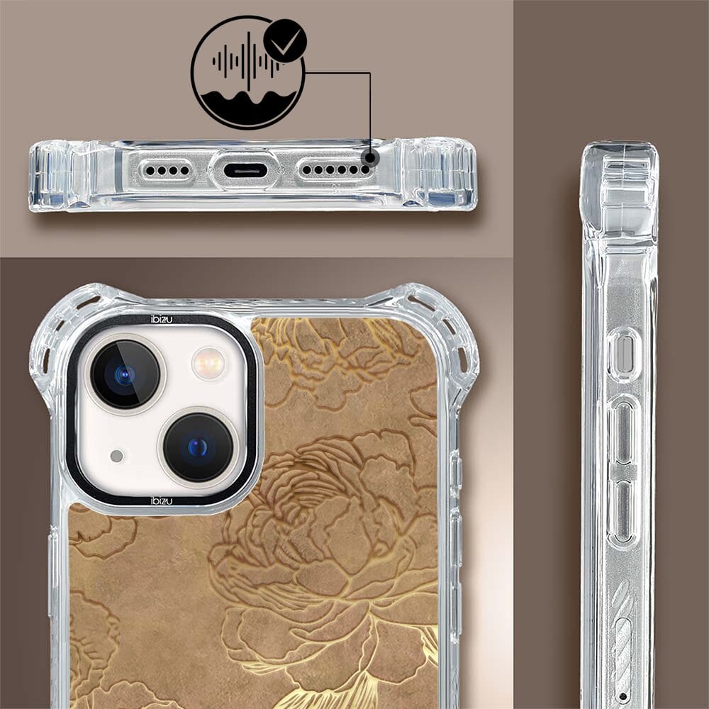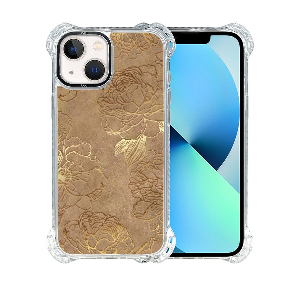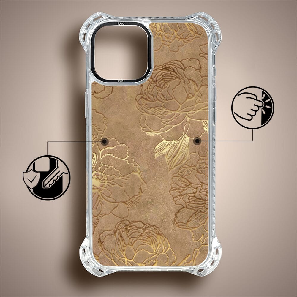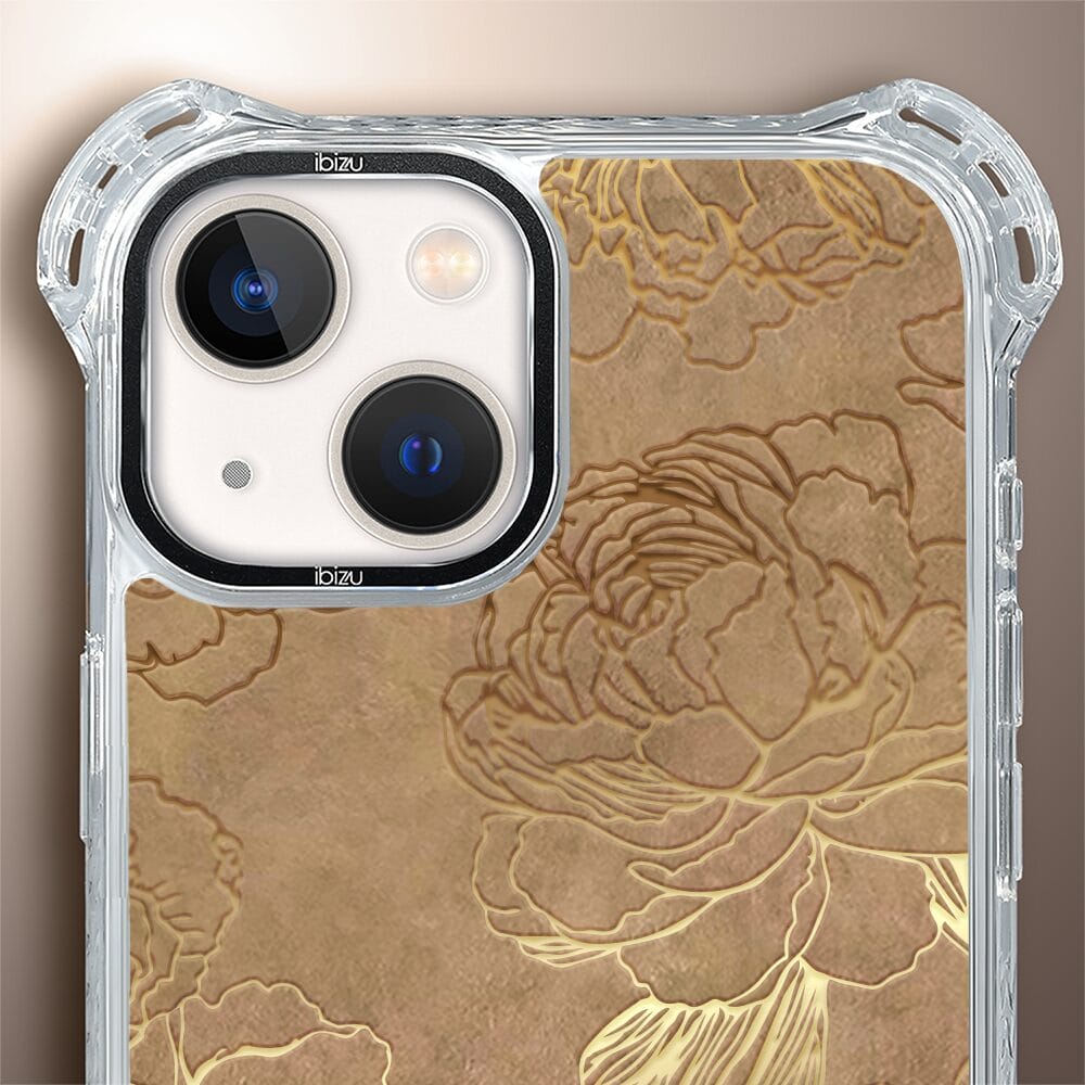 Etui do iPhone 13 IBIZU DropGuard Ultra z MagSafe, Relief Garden, Złote piwonie