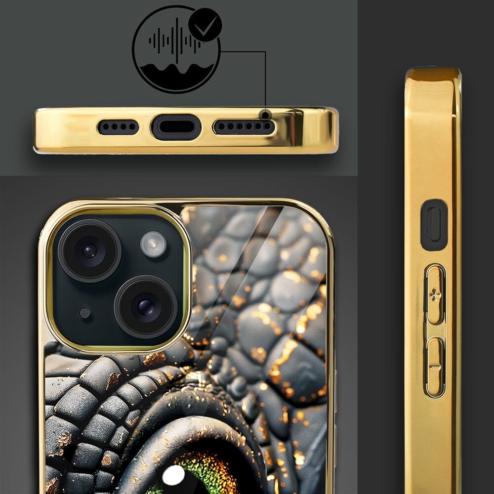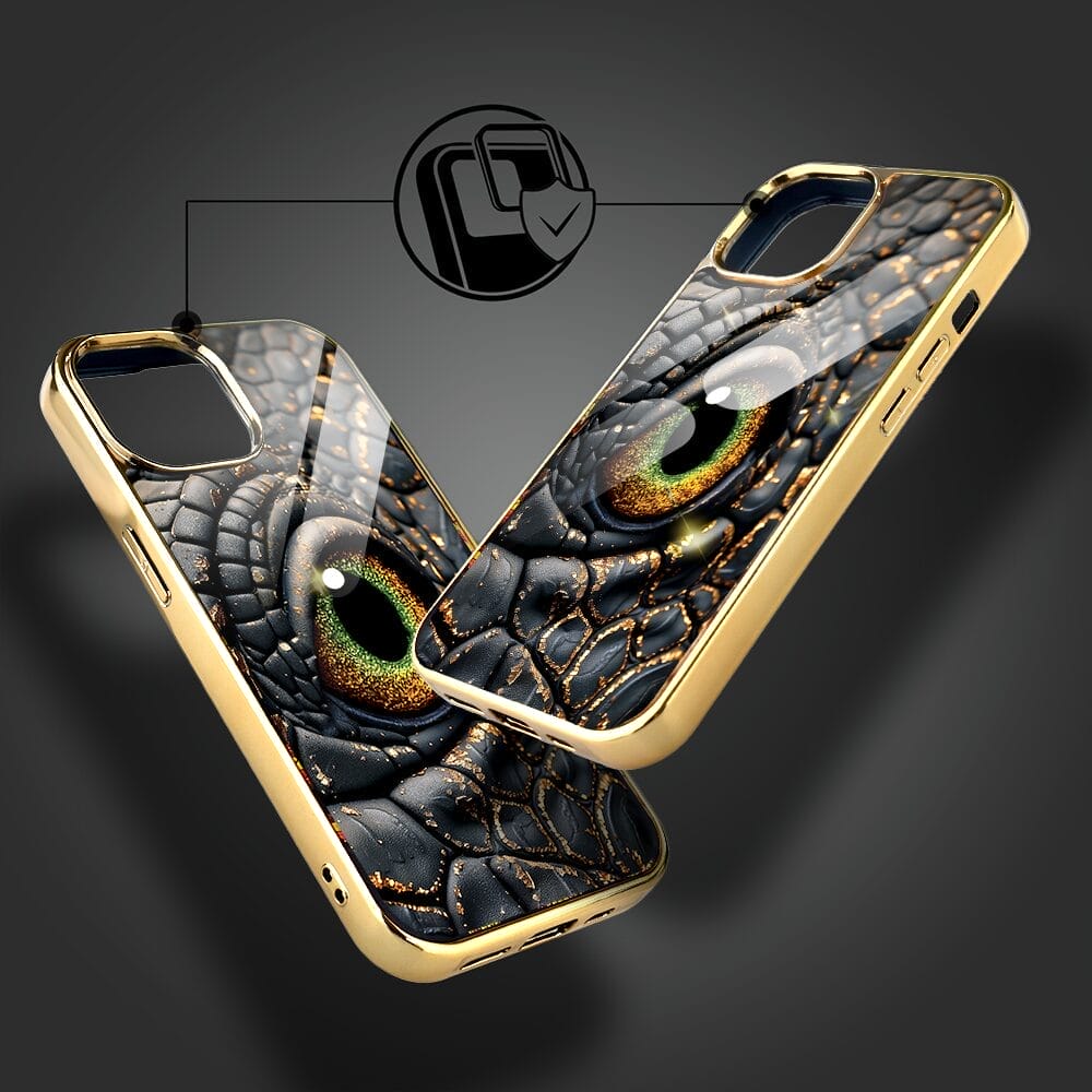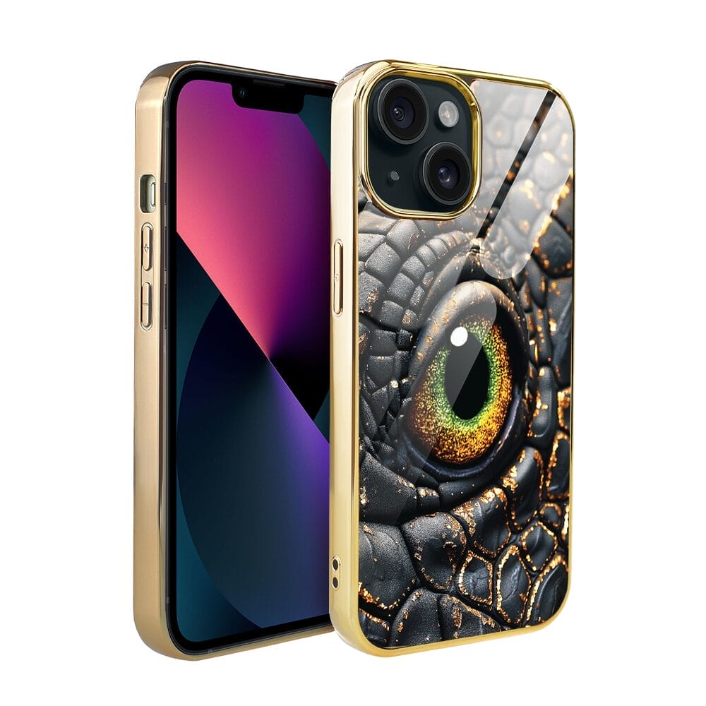 Etui do iPhone 13 IBIZU Elite Glass, szklany tył, Magia Azji amber dragon, złote