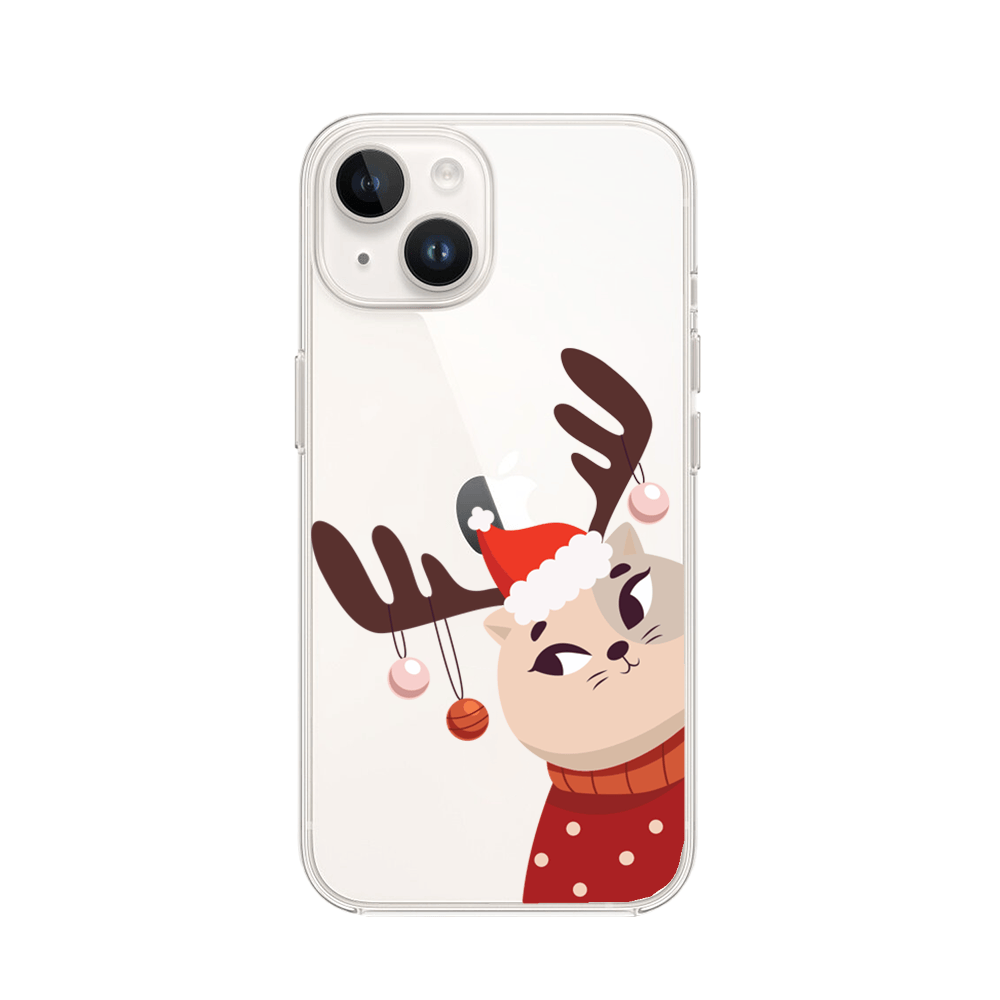 Etui do iPhone 13 Mini przeźroczyste, silikonowe Flexi, Kotek przebrany za reniferka
