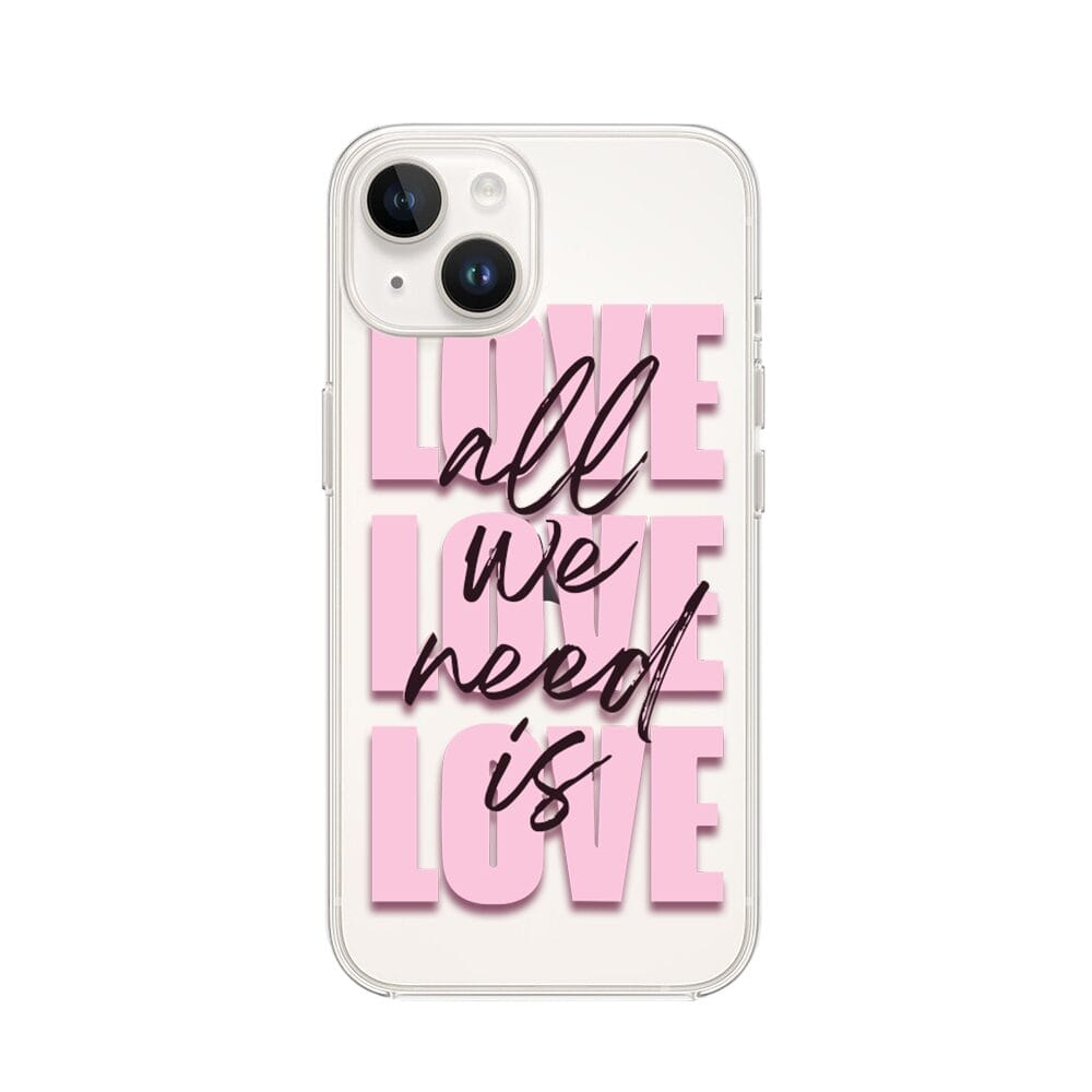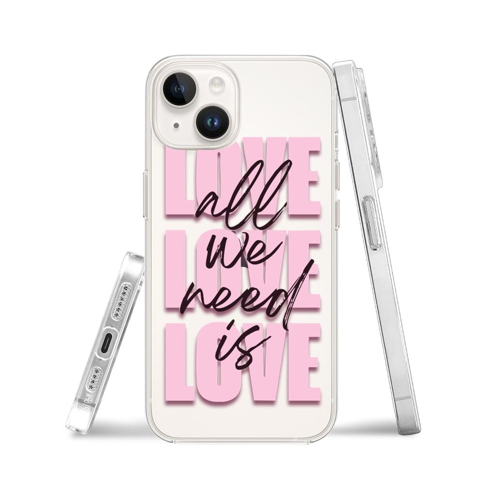 Etui do iPhone 13 Mini przeźroczyste, silikonowe Flexi, Positive Vibes, All We Need Is Love