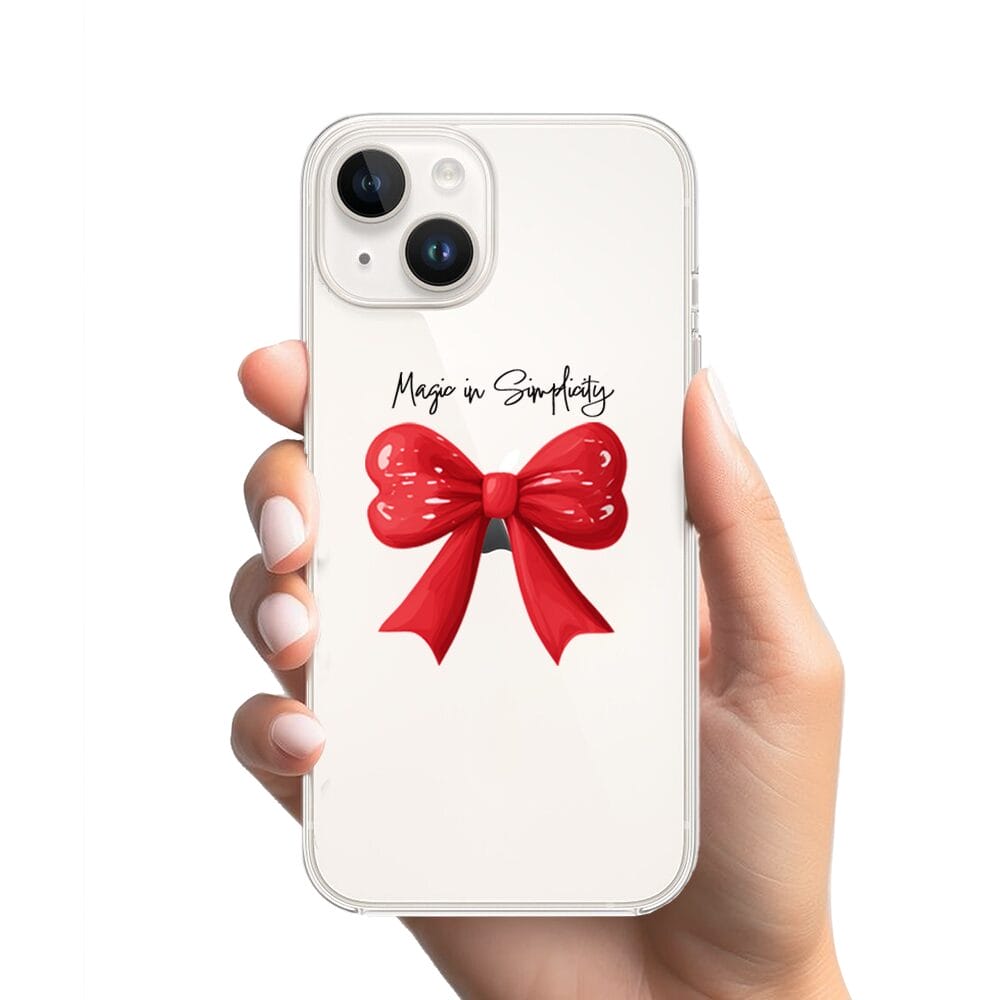 Etui do iPhone 13 Mini przeźroczyste, silikonowe Flexi, Przytulne święta, Czerwona kokarda