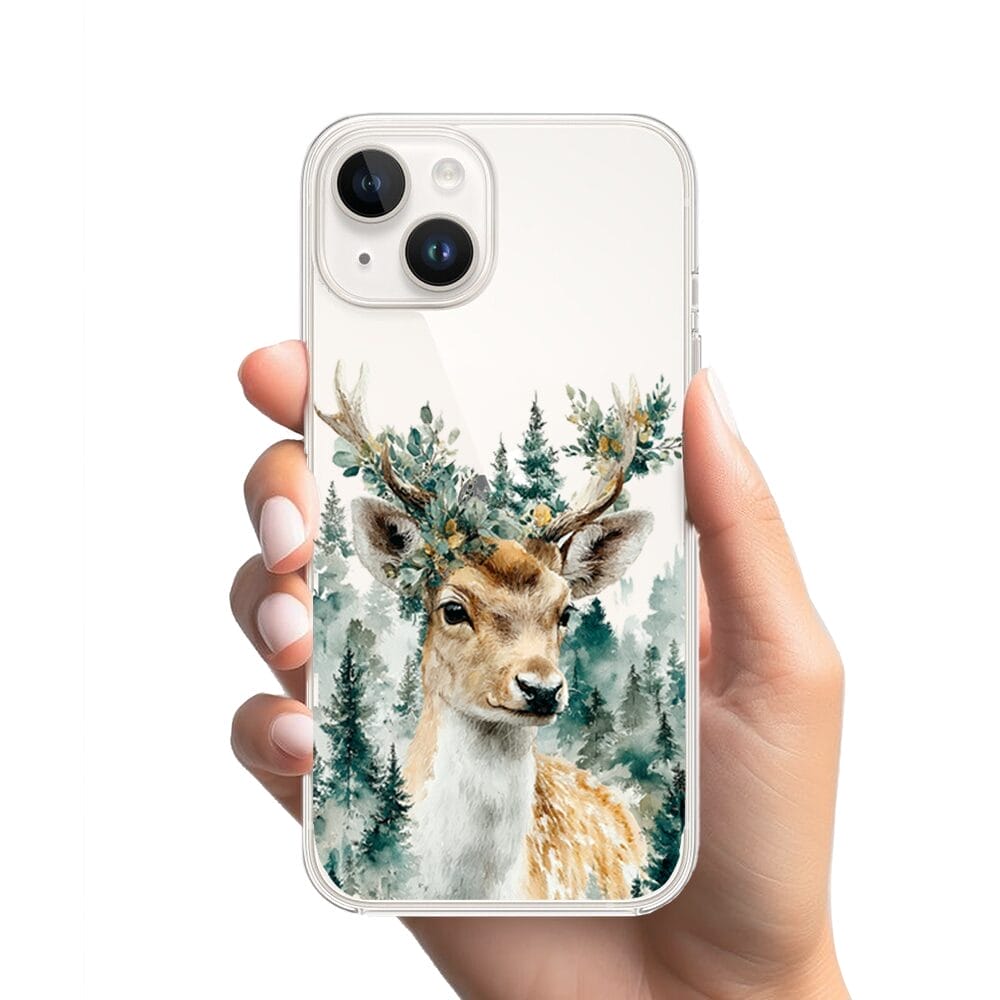 Etui do iPhone 13 Mini przeźroczyste, silikonowe Flexi, Przytulne święta, Leśny jelonek