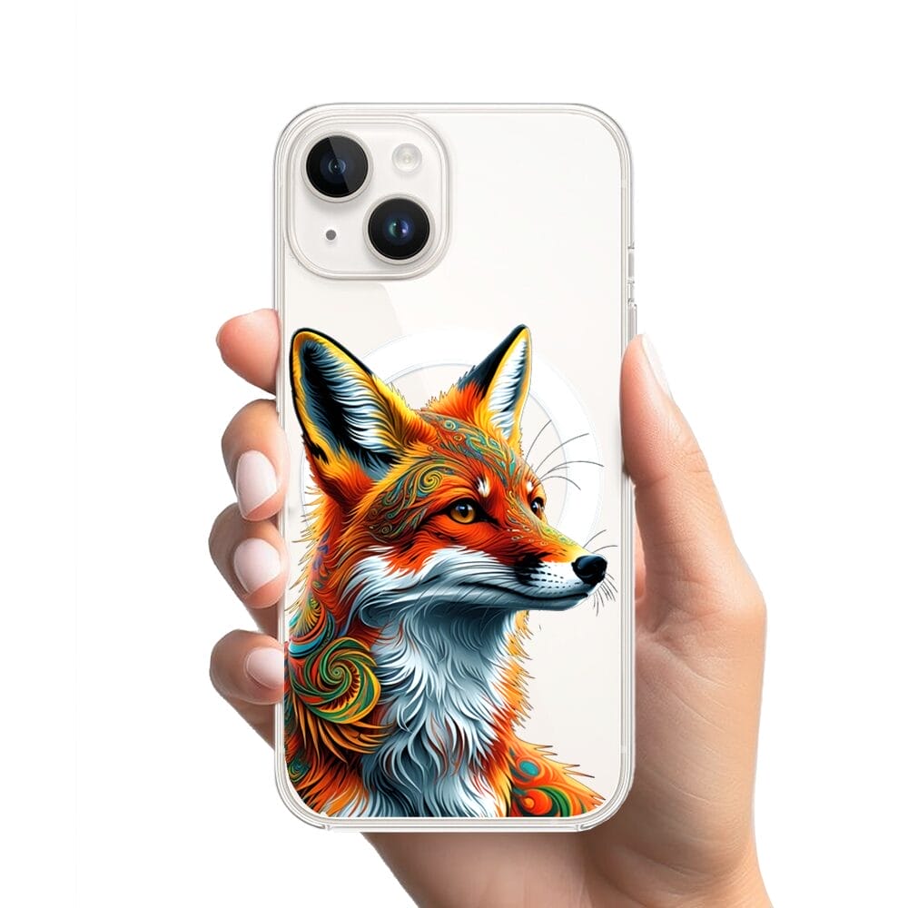 Etui do iPhone 13 Mini z MagSafe przeźroczyste, silikonowe Flexi, Dzika Mandala, Twarz lisa