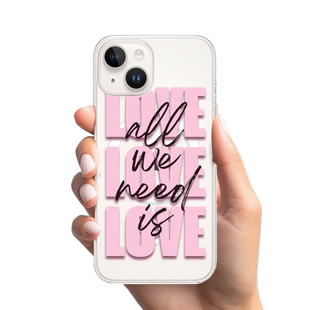 Etui do iPhone 13 Mini z MagSafe przeźroczyste, silikonowe Flexi, Positive Vibes, All We Need Is Love