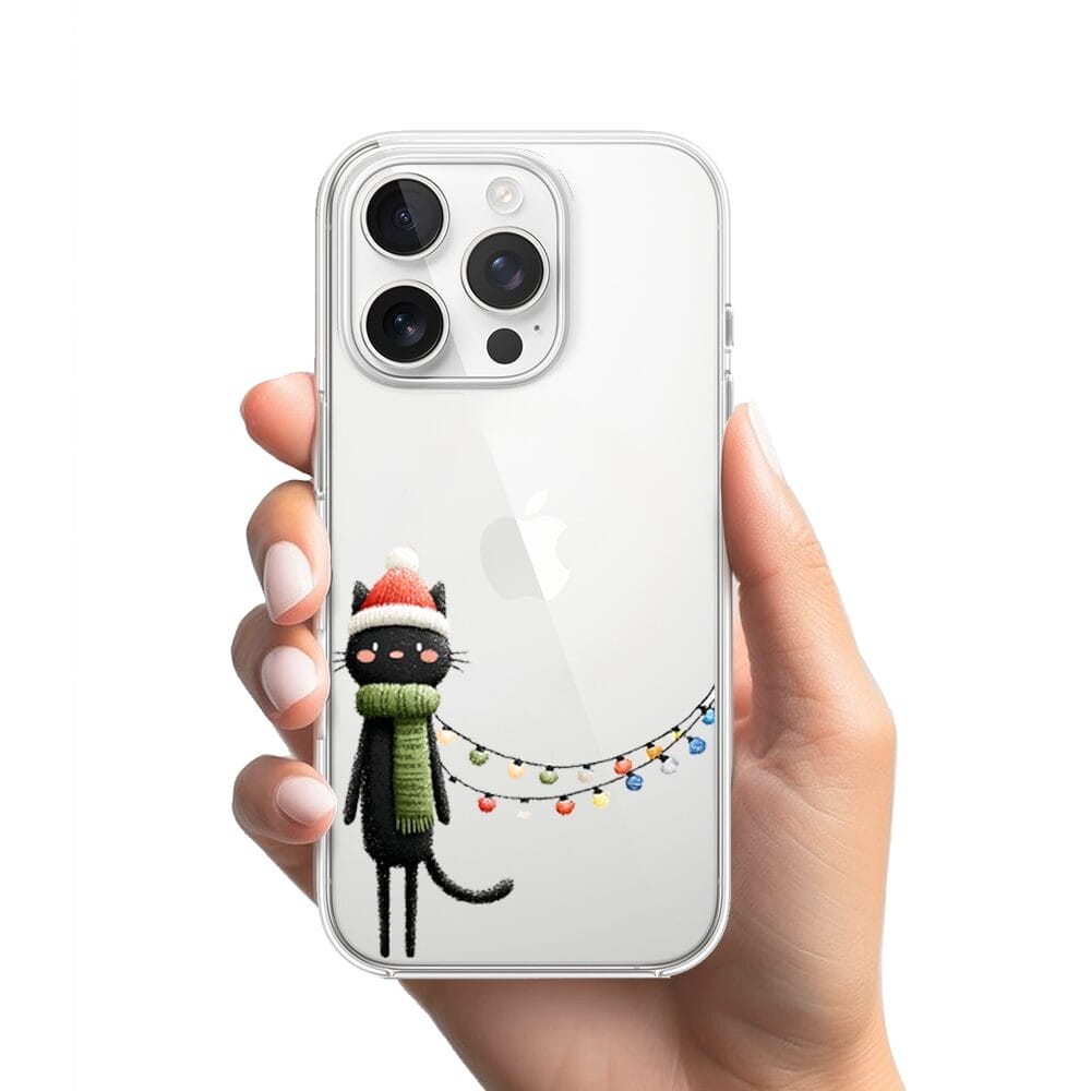 Etui do iPhone 13 Pro Max przeźroczyste, silikonowe Flexi, Przytulne święta, Kot przebrany za elfa
