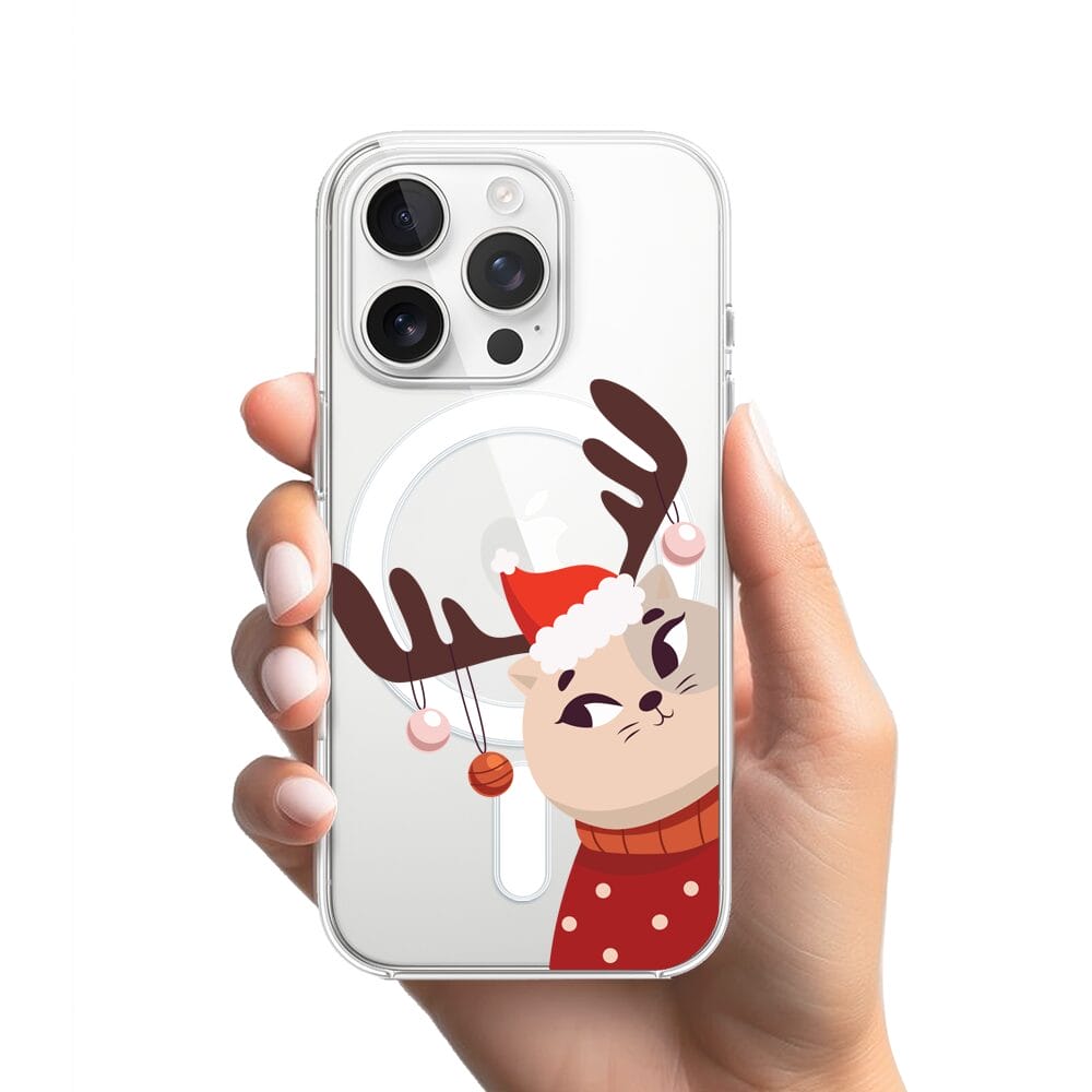 Etui do iPhone 13 Pro Max z MagSafe przeźroczyste, silikonowe Flexi, Kotek przebrany za reniferka