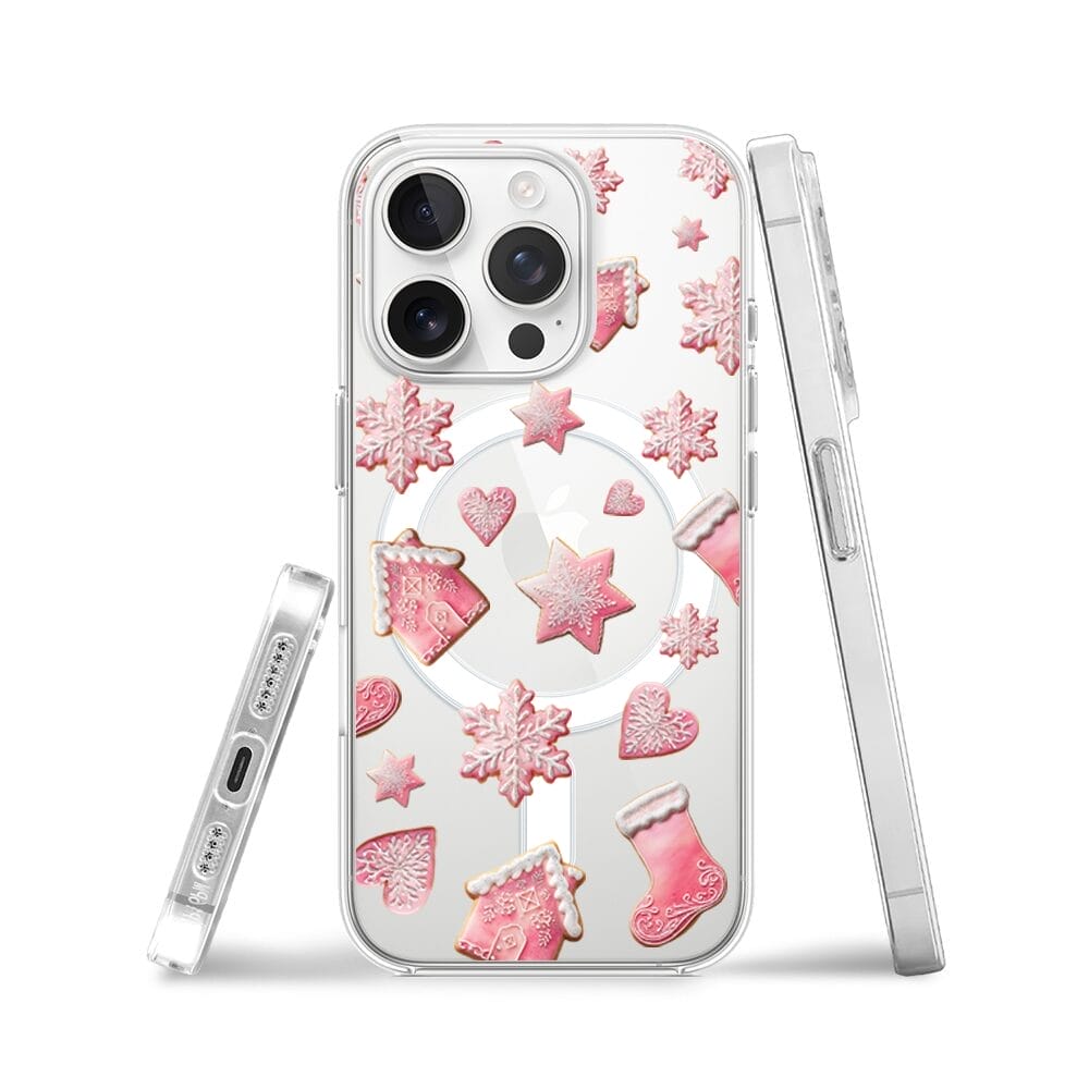 Etui do iPhone 13 Pro Max z MagSafe przeźroczyste, silikonowe Flexi, Przytulne święta, Różowe pierniczki