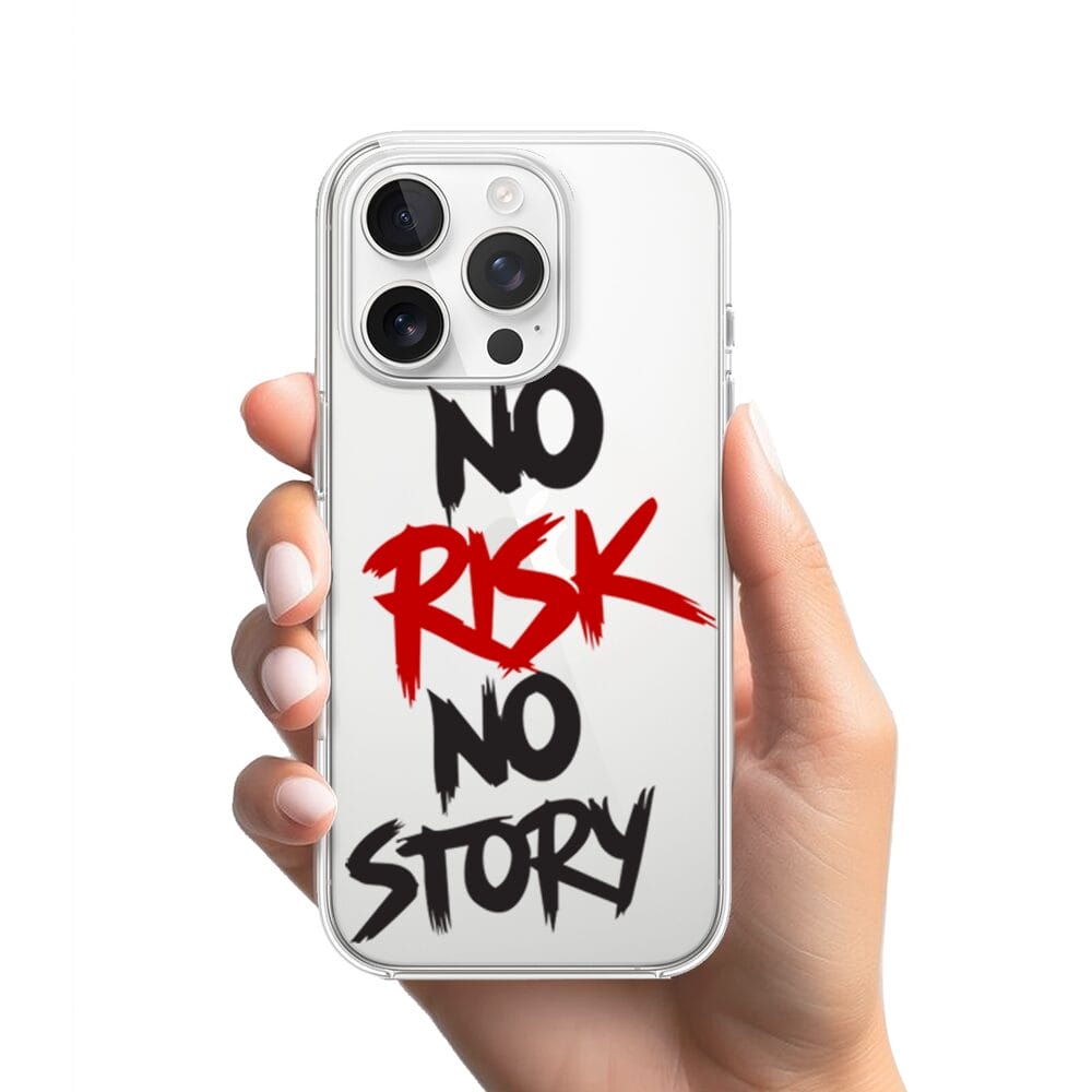 Etui do iPhone 13 Pro przeźroczyste, silikonowe Flexi, Positive Vibes, No Risk No Story