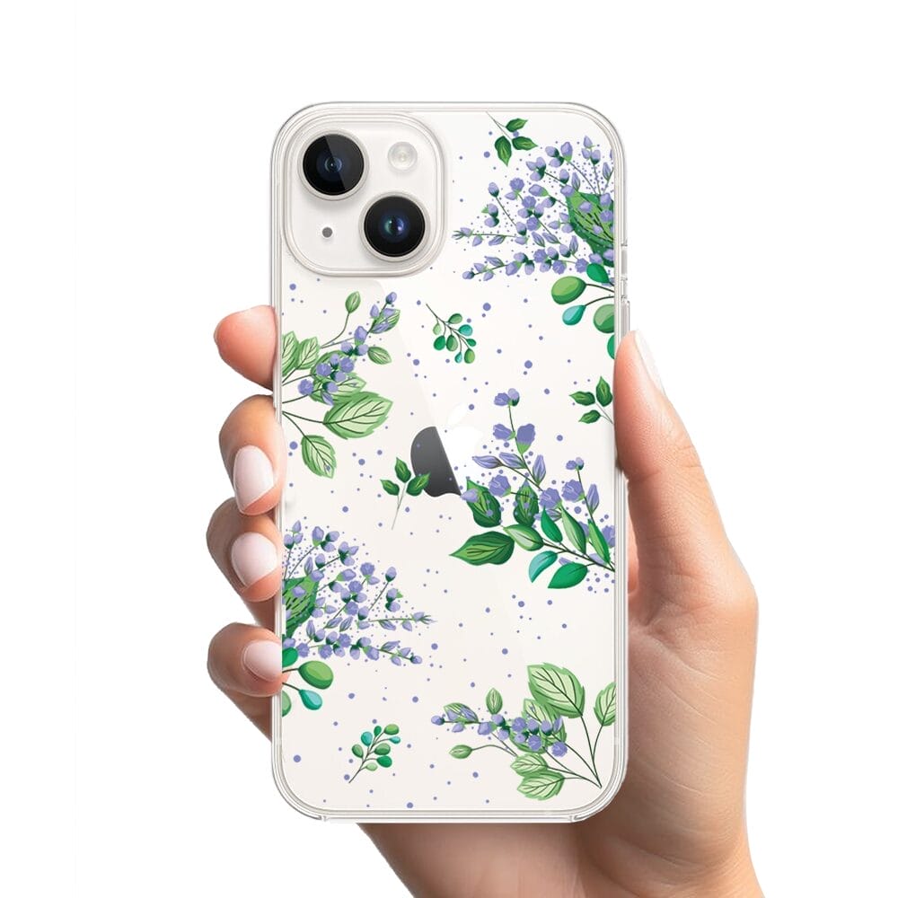 Etui do iPhone 13 przeźroczyste, silikonowe Flexi, fioletowe kwiatki