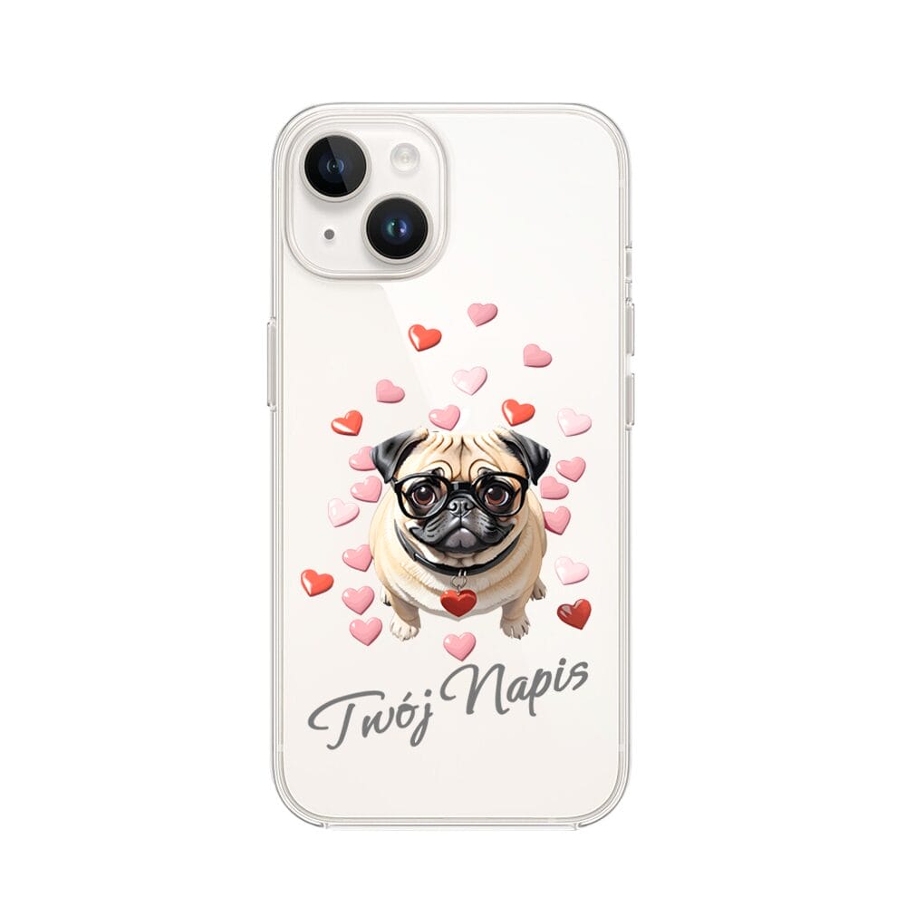 Etui do iPhone 13 przeźroczyste, silikonowe Flexi, Puppy Love, pies rasy Mops