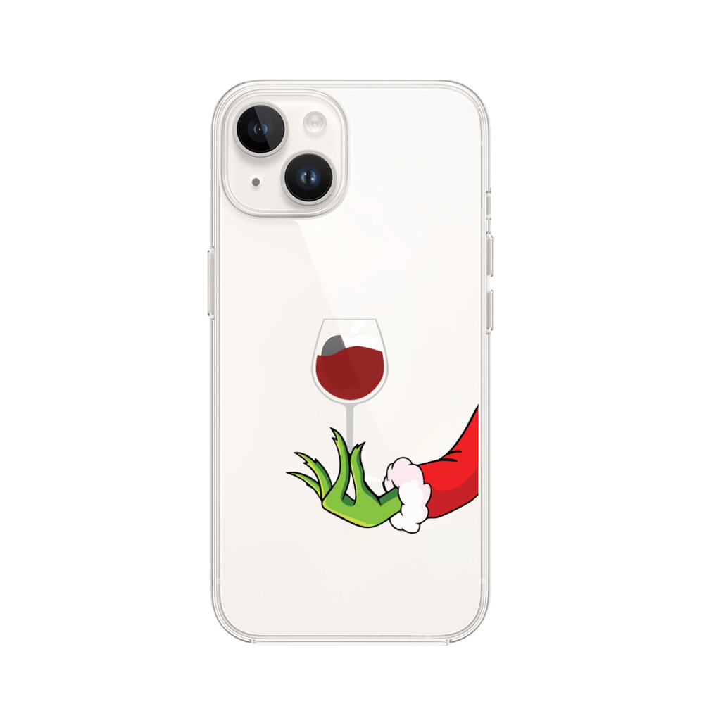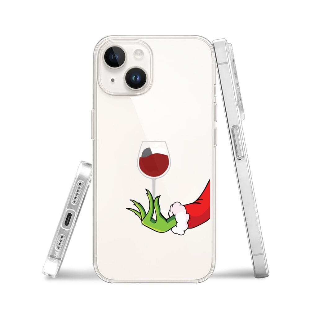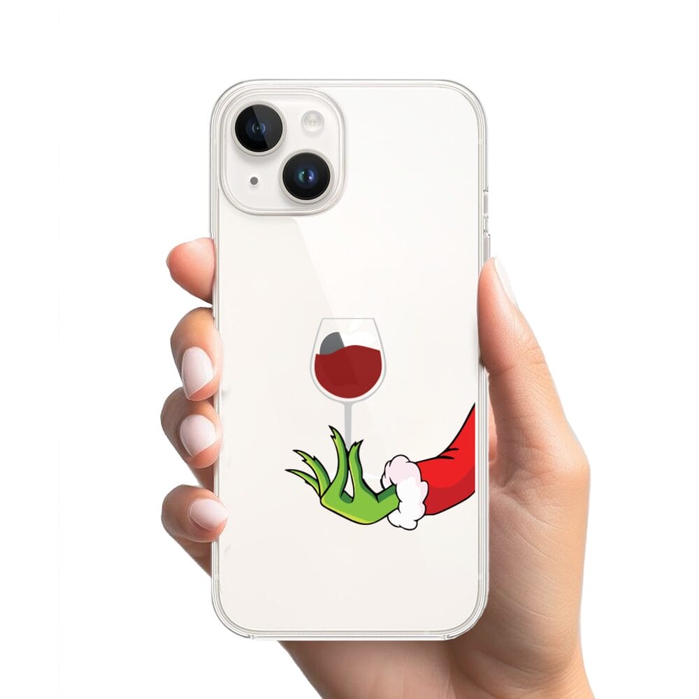 Etui do iPhone 13 przeźroczyste, silikonowe Flexi, zielony psotnik z lampką wina